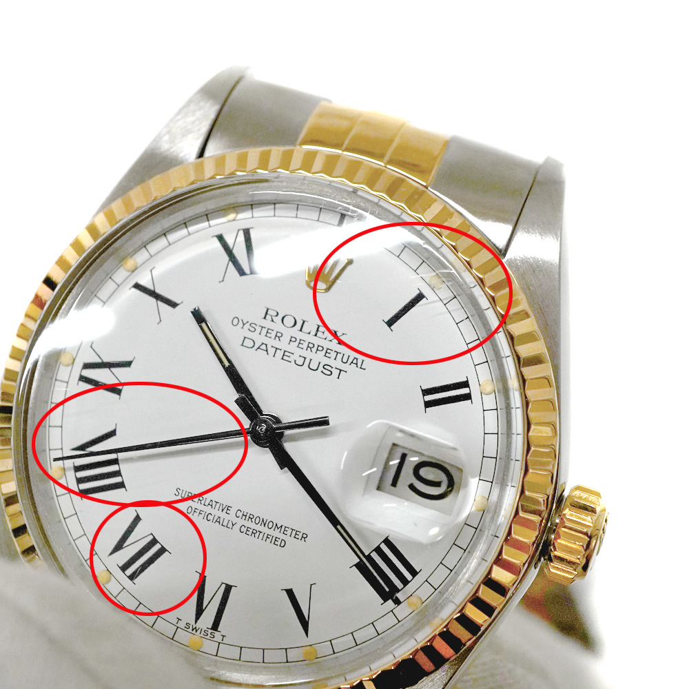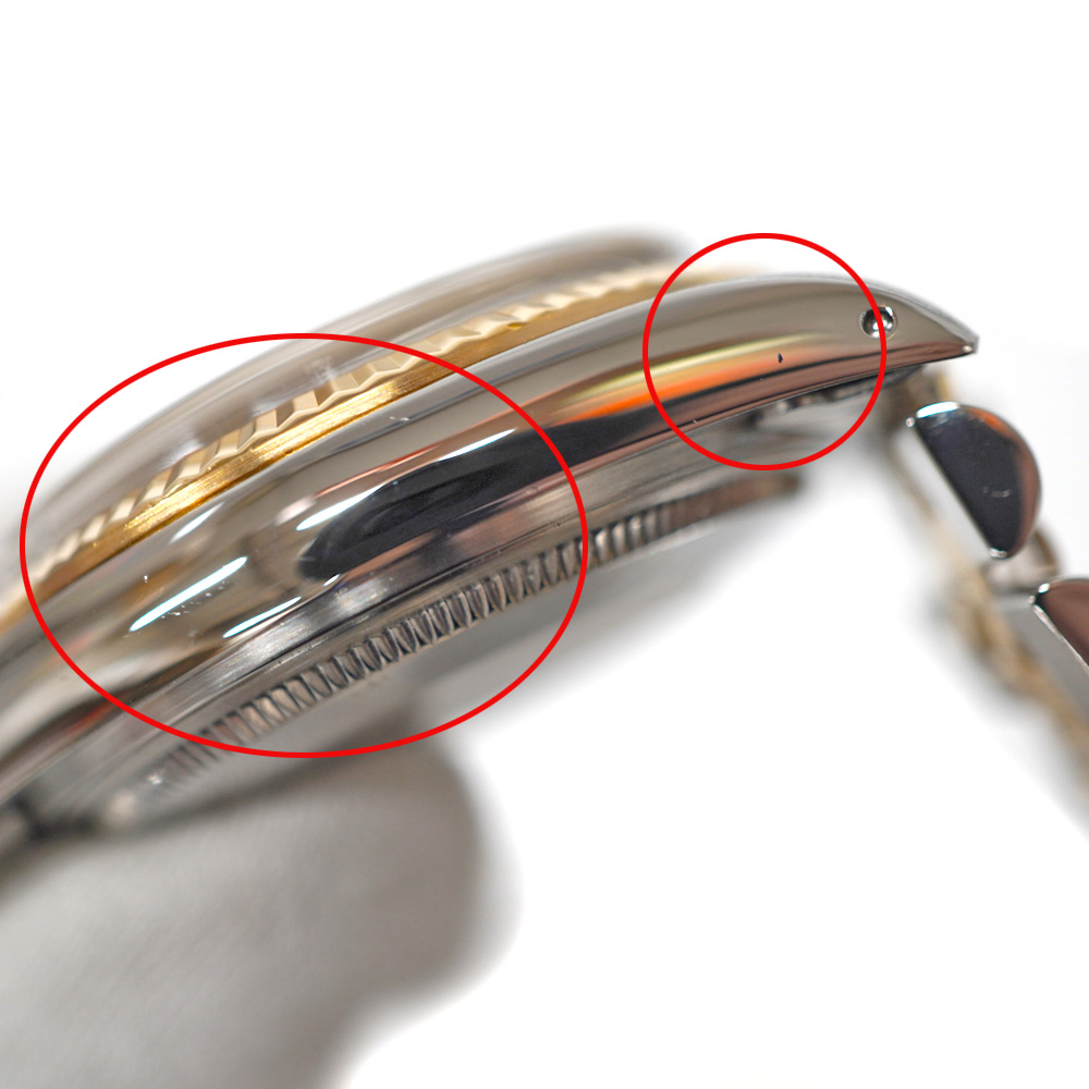 | 商品状態 | ■ブレス伸び ■ケース・クラスプ・裏蓋にキズ ■ベゼル縁擦れ ■風防に数箇所キズ ■付属の箱劣化 ■弊社委託業者にて外装仕上げを行っておりますが取り切れない細かなキズ等がある場合がございますのでご了承ください。 ■店頭でも販売している為、画像にないキズ等付く可能性がありますので予めご了承くださいませ。 |
