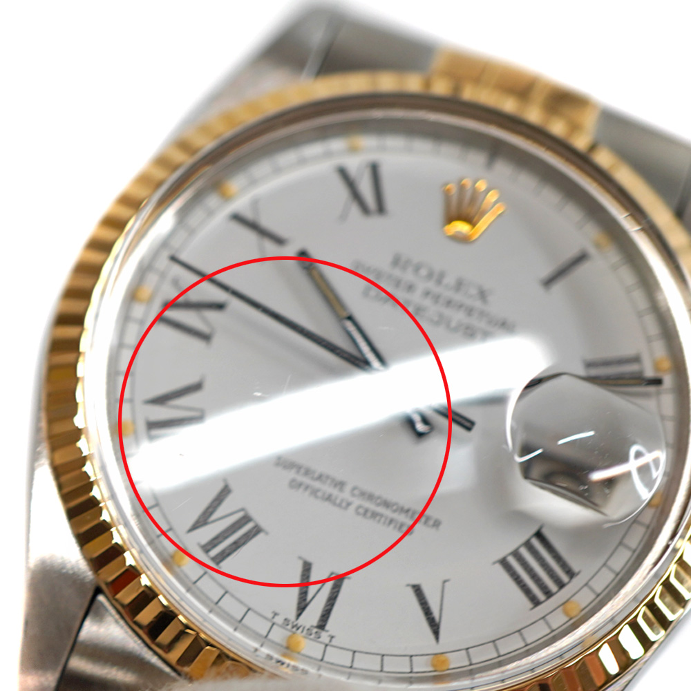| 素材 | ケース:SS(ステンレススチール)×K18YG(18金イエローゴールド) ベゼル:18KYG(18金イエローゴールド) ブレス:SS(ステンレススチール)×K18YG ダイヤル:ホワイト 風防:プラスチック |
