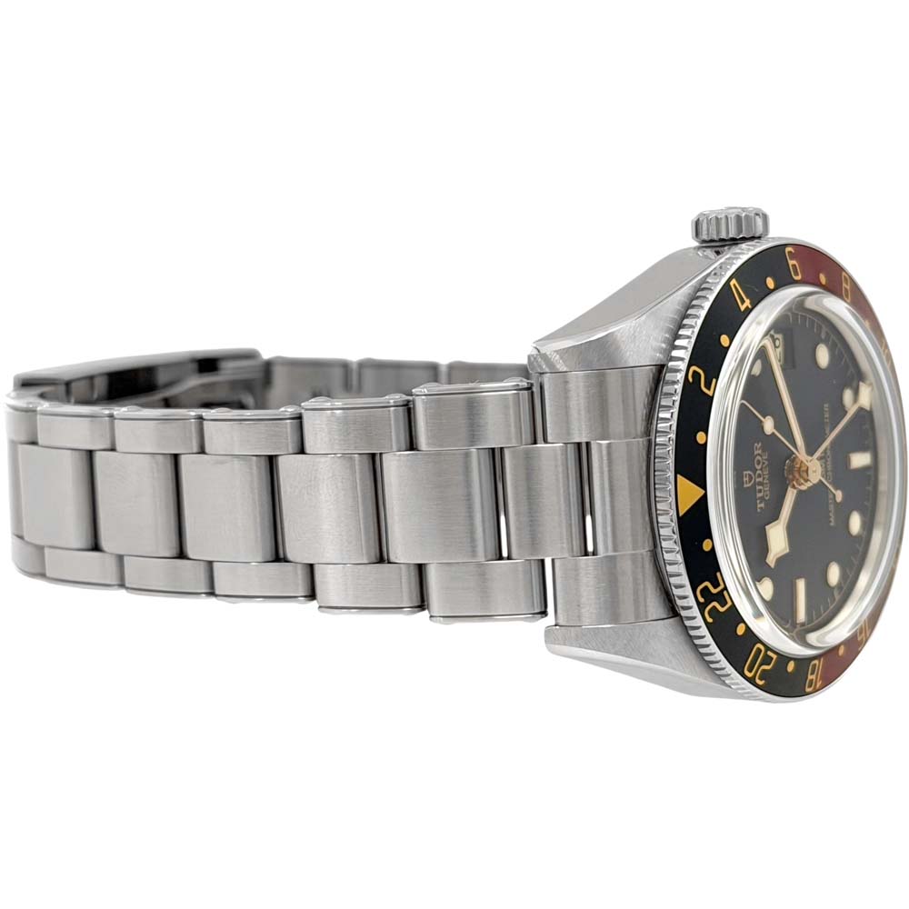 | 商品説明 | チューダーの「ブラックベイ 58 GMT」モデルは、クラシックなダイバーズウォッチのデザインを持ち、GMT機能を特徴としています。この時計は、伝統的なブラックベイスタイルを継承しつつ、異なるタイムゾーンを追跡できる便利さを提供します。ヴィンテージ感を感じさせるデザインと高い精度で人気です。