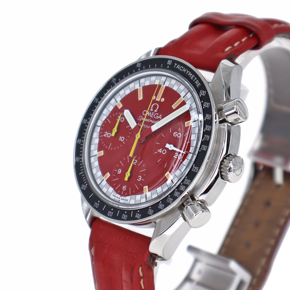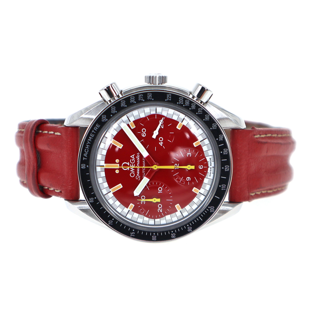 | 商品説明 | ■OMEGA【オメガ】の3510.61/スピードマスターレーシングシューマッハのご紹介です。 F1レーサーであるミハエルシューマッハとオメガが広告契約を結んだ記念として作られたモデルです。 文字盤の外側にはチェッカーフラグをデザインしており、赤色の文字盤と黄色いクロノグラフ針がとても目を引く一本です。 カラーリングがとてもオシャレですので、コーディネートのアクセントとしていかがでしょうか。 この機会に是非いかがでしょうか。 ※尚、当サイトの販売金額より店頭での販売金額の方をお安く設定させて頂いております。予め、ご了承下さいませ。(一部セール品等除く) |