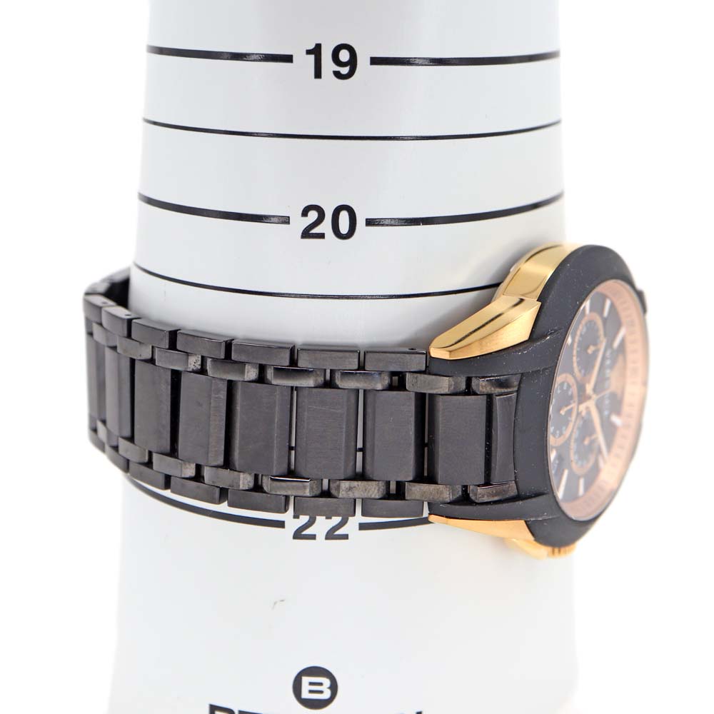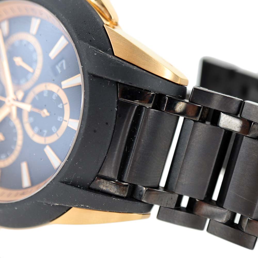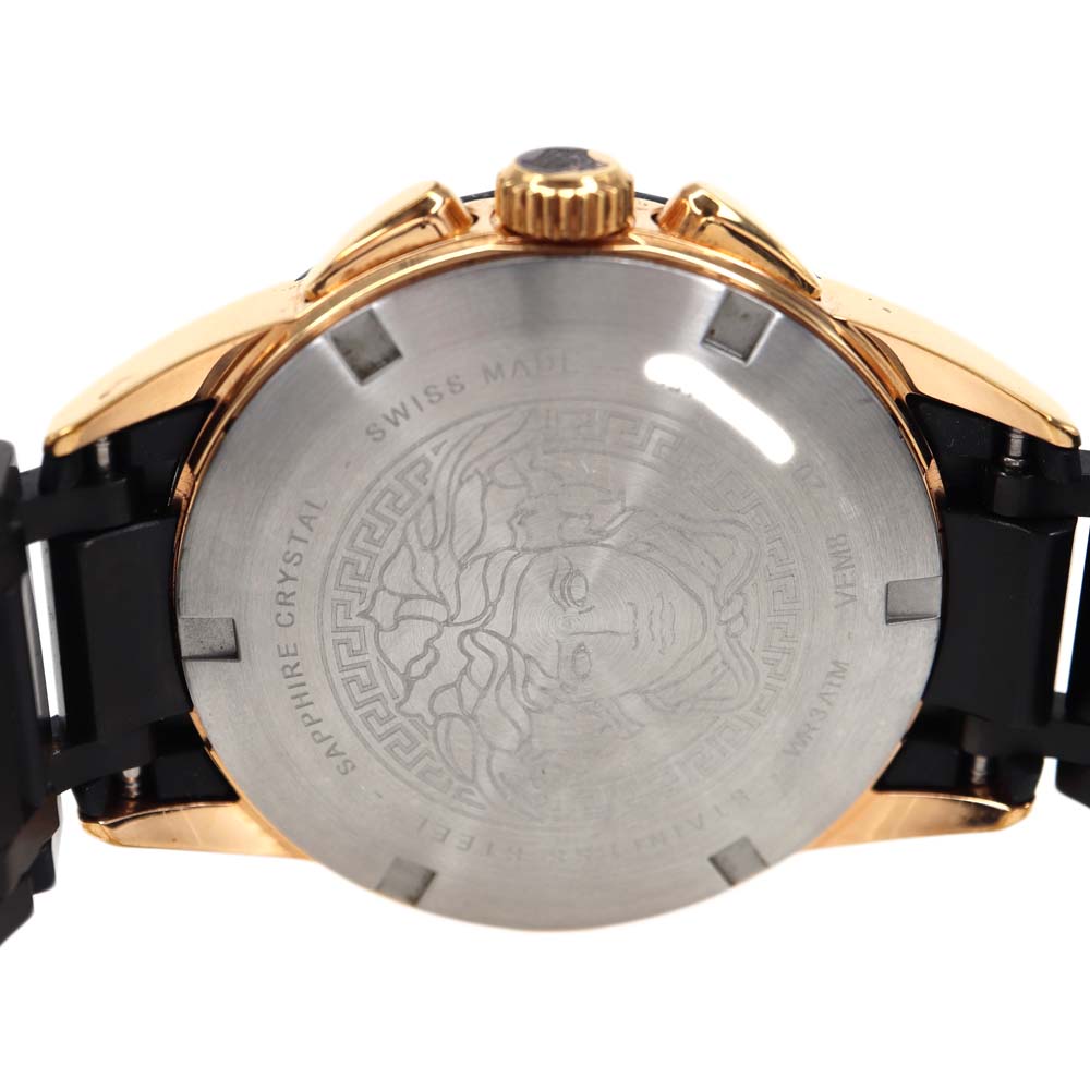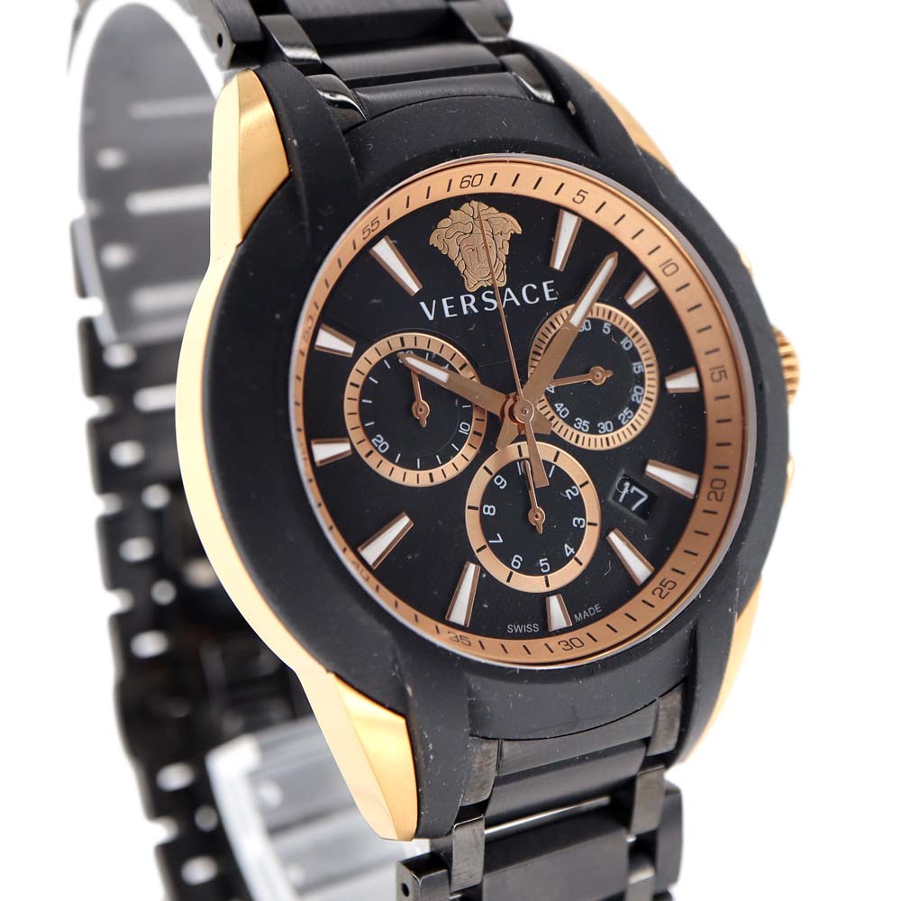 | 商品説明 | ヴェルサーチのキャラクタークロノグラフのご紹介です。 ブラックと細部に使用されたピンクゴールドが華やかな印象のお時計です。 ヴェルサーチを代表する「メデューサ」のモチーフが文字盤だけでなくリューズにもデザインされており、裏蓋のメデューサには囲うようなグレカのデザインも。 ヴェルサーチを代表するデザインが詰め込まれた1本となっております。 一見華やかではありますが、まとまった印象で年代問わずお使いいただけます。 お探しの方はこの機会に是非いかがでしょうか。