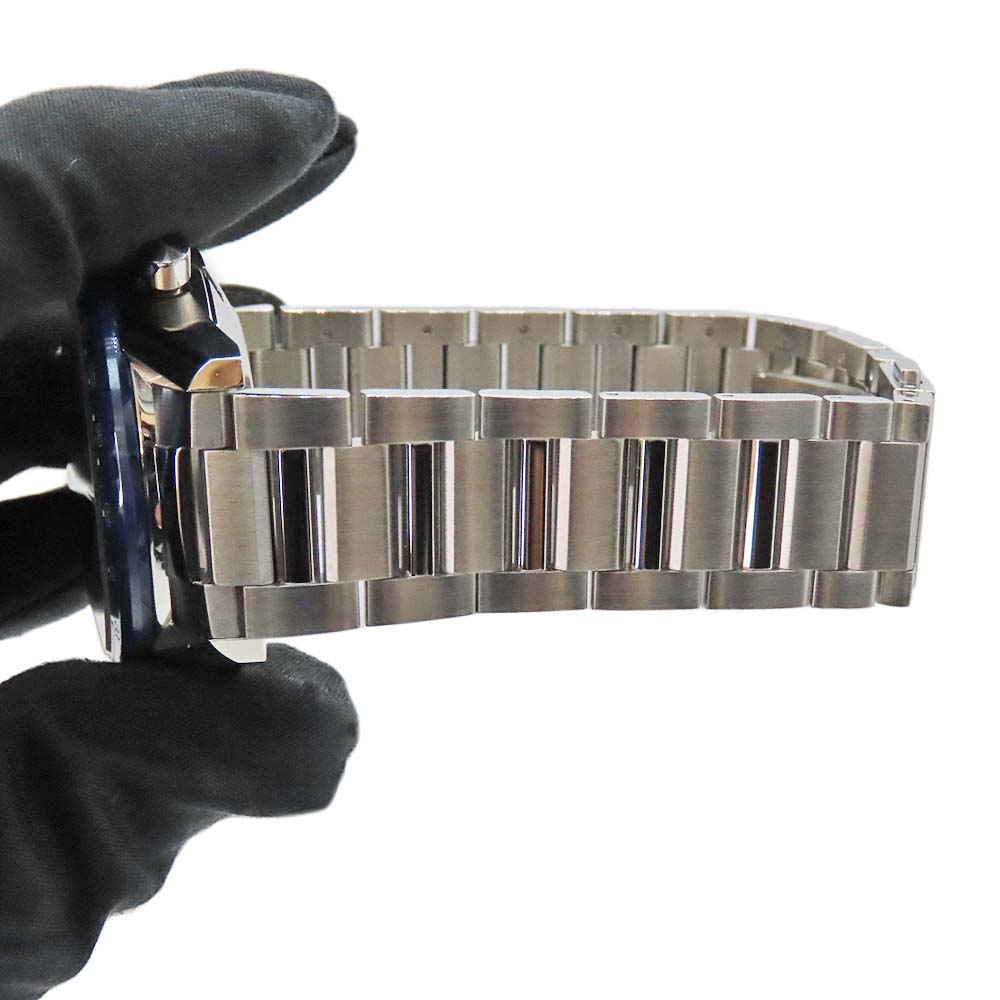 | 素材 | ケース:SS(ステンレススチール)×ブルーセラミック製タキメーター ブレス:SS(ステンレススチール) ダイヤル:ブルー ガラス:サファイアクリスタル |