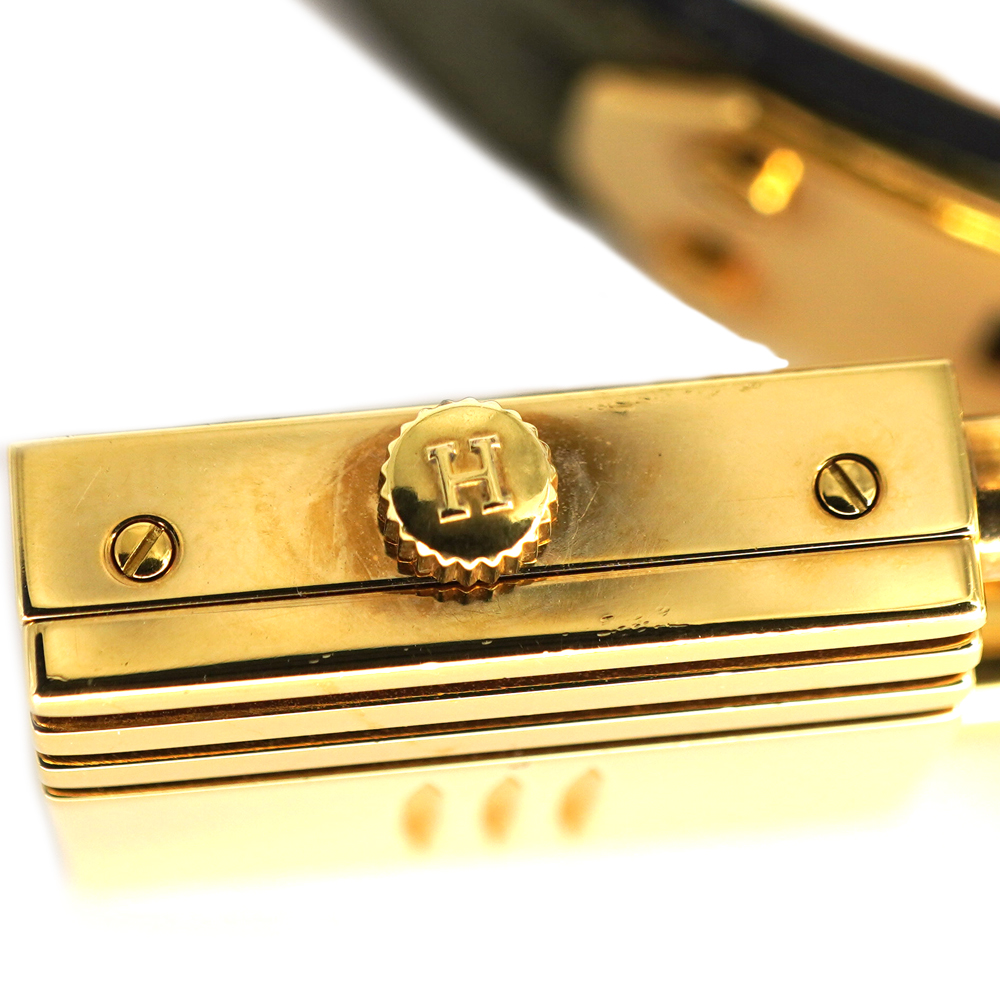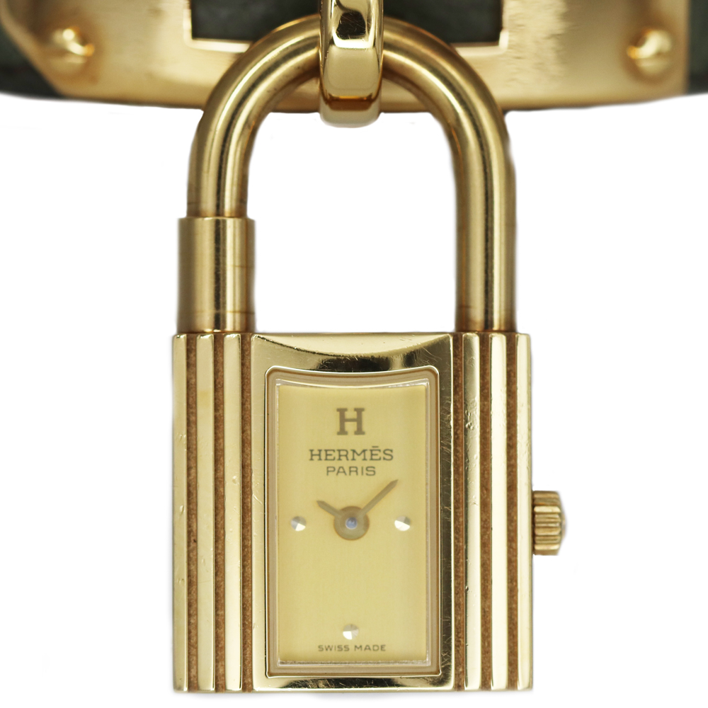 エルメスの中でも人気の高いモデル、ケリーウォッチです。 エルメスの定番人気バッグ『ケリー』のロック部分をモチーフとした腕時計となっています。