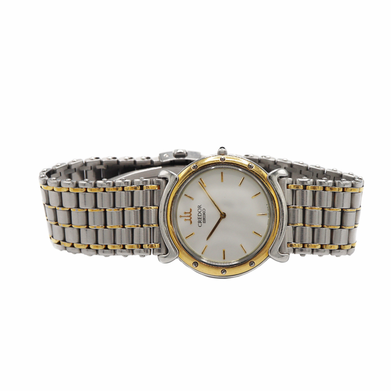 クレドールは「黄金の頂き(Crête d'Or)」という意味を持つ、セイコーの最高級ドレスウオッチブランドです。 日本の美意識と匠の技を凝縮した、薄型で上品なデザインが特徴で、金やプラチナなどの厳選された素材が使われています。 K18が使用された薄型のケースが手元にフィットし上品な印象を与えてくれます。