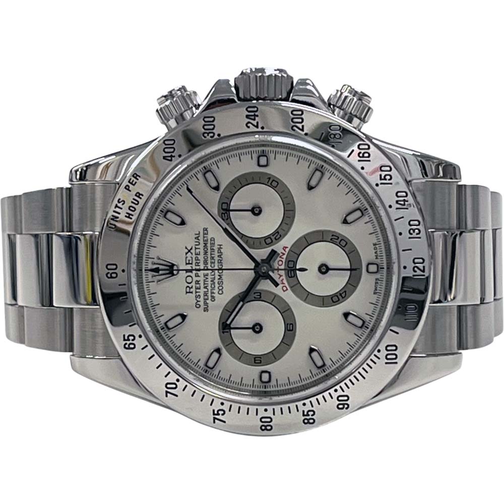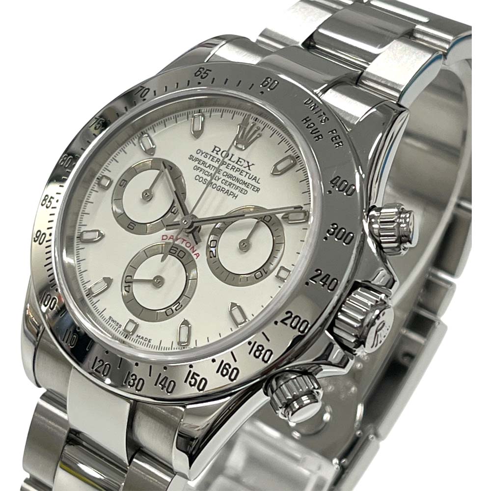 | 商品説明 | ロレックスのコスモグラフ デイトナ116520は、自動巻きのクロノグラフムーブメントを搭載した腕時計です。高精度な計時機能を備えており、ステンレススチールのケースとオイスターブレスレットを特徴としています。ベゼルにはタキメータースケールが刻まれており、ストップウオッチ機能を持つことから、多くのレース関係者や時計愛好家に支持されています。116520は、デイトナのラインナップの中でも特に人気のあるモデルです。