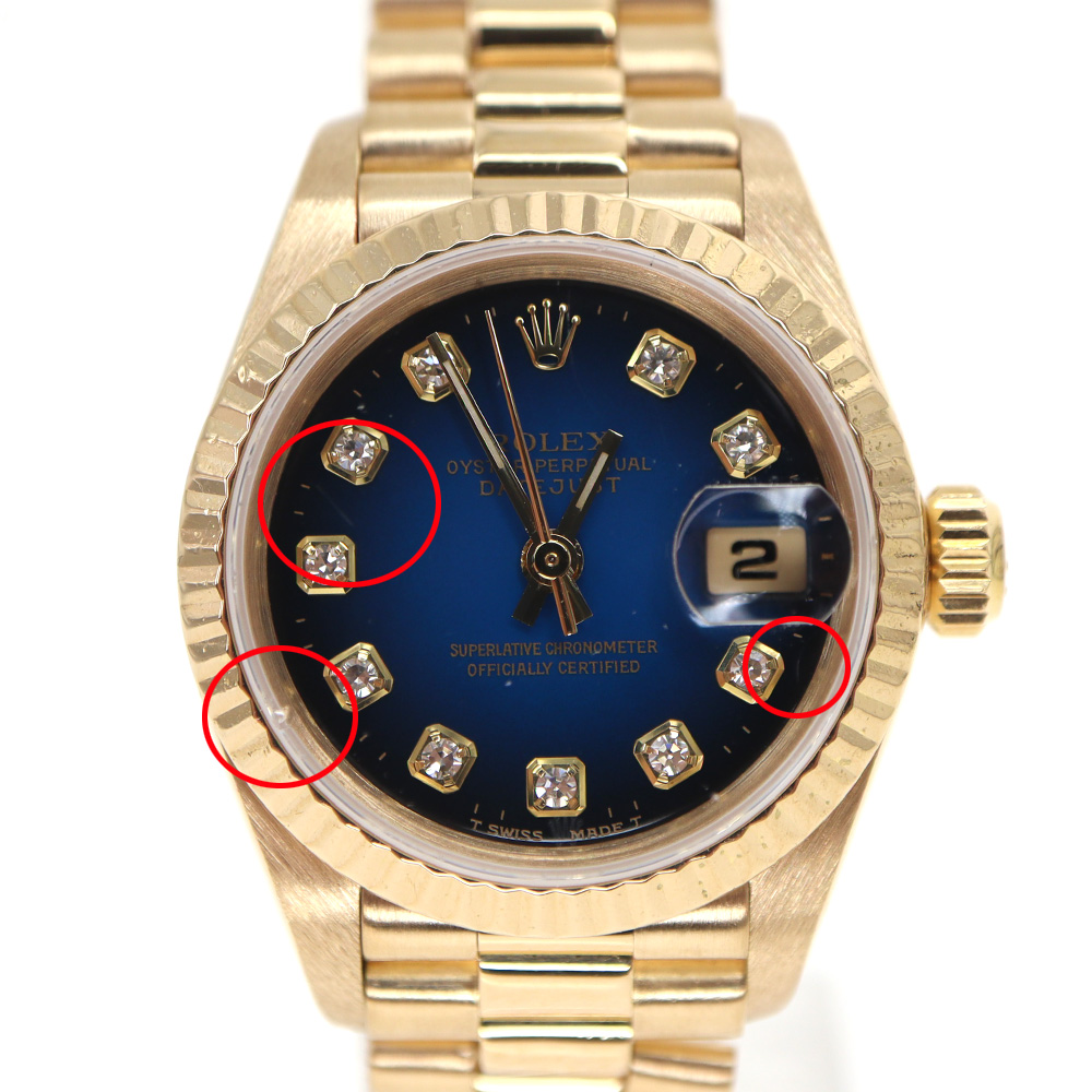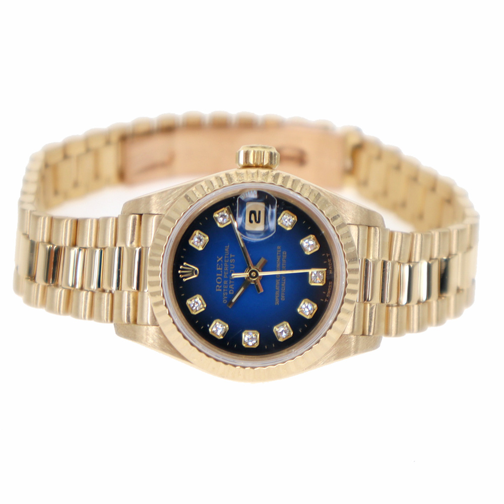 | 商品説明 | ■ROLEX【ロレックス】の「デイトジャスト」が入荷しました。 デイトジャストとは午前0時頃瞬時に日付が変わるデイトジャスト機構、全回転式ローターを搭載したパーペチュアル機構、ロレックス三大機構を搭載したモデルです。 素材にはK18YG(イエローゴールド)が使用された重厚感、ラグジュアリーさのある一本です。 ジュエリーのようなエレガンスとクラシカルなデザインで、女性の腕元を華やかに彩るデザインですので華やかなシーンで活躍間違いなしです。 貴重なブルーグラデーション文字盤。 この機会に是非いかがでしょうか。