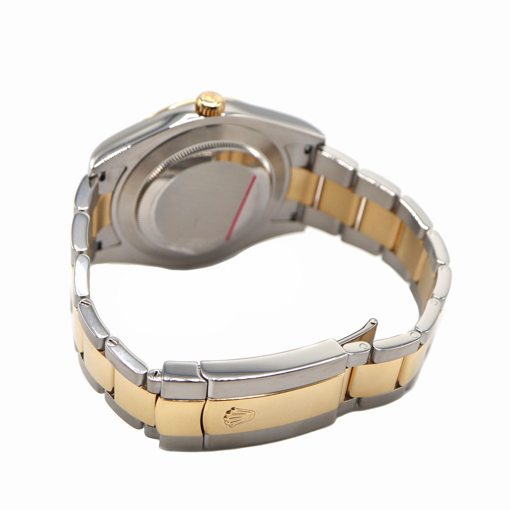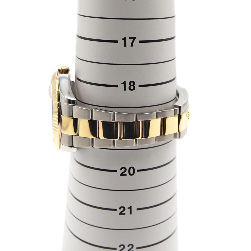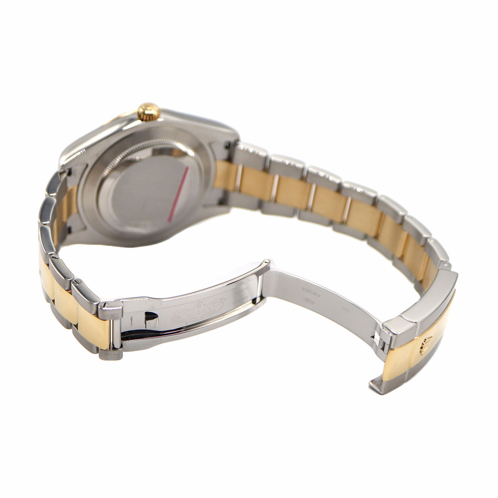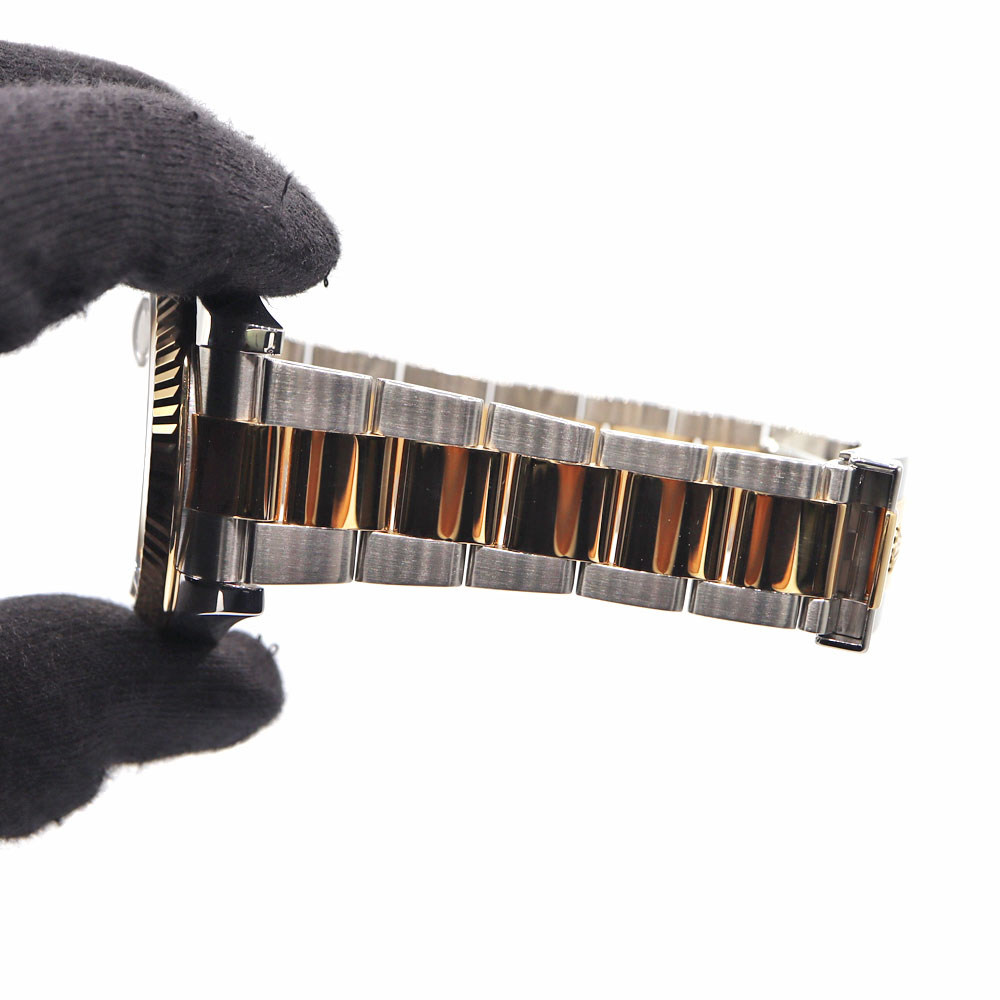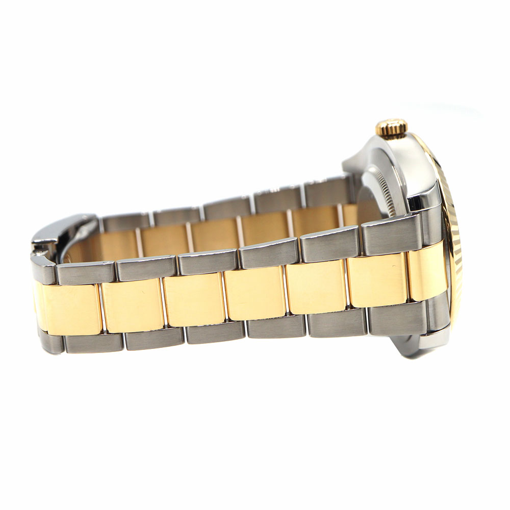 美しいカッティングが施された18Kイエローゴールド製のフルーテッドベゼルを搭載しているこちらのアイテム。 シャンパンゴールドの文字盤に10Pダイヤのインデックスが高級感を醸し出しています。