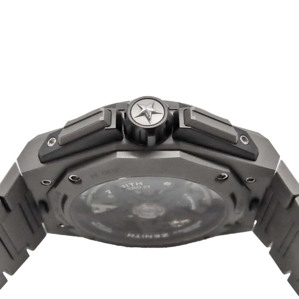 | 商品説明 | ゼニス デファイ エクストリーム 97.9100.9004は、1/100秒計測を可能にするエル・プリメロ21を搭載したハイパフォーマンスモデル。
