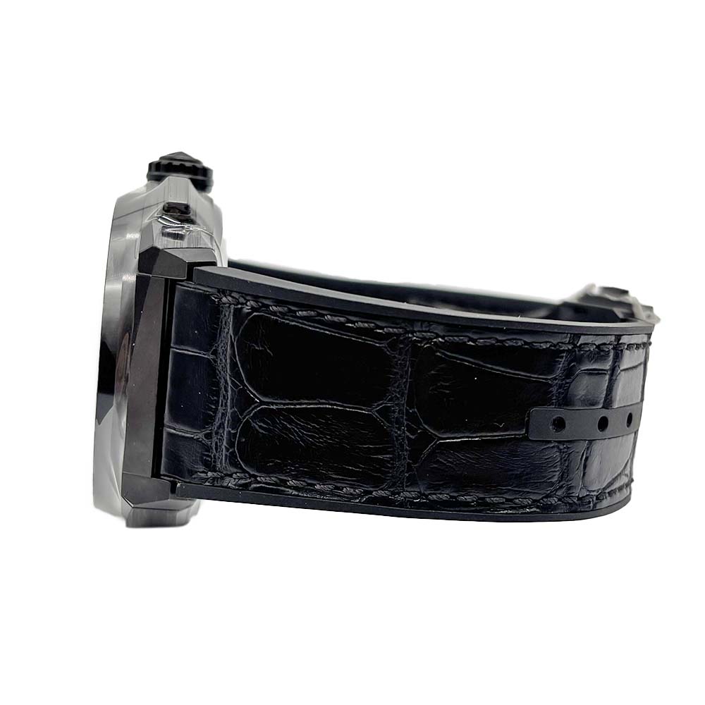 | 素材 | ケース:ブラックセラミック ブレス:ラバー (アリゲーターレザーコーティング) ダイヤル:ブラック (スケルトン) ガラス:サファイアクリスタル |