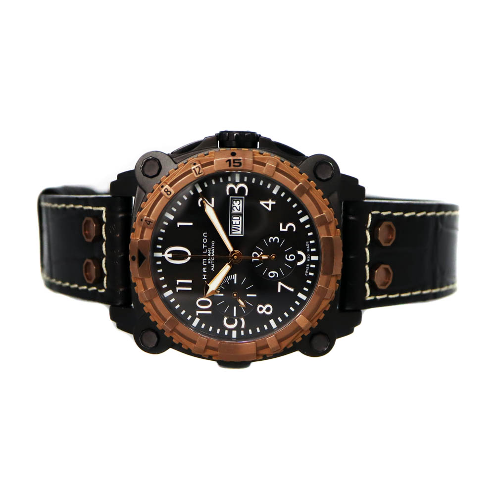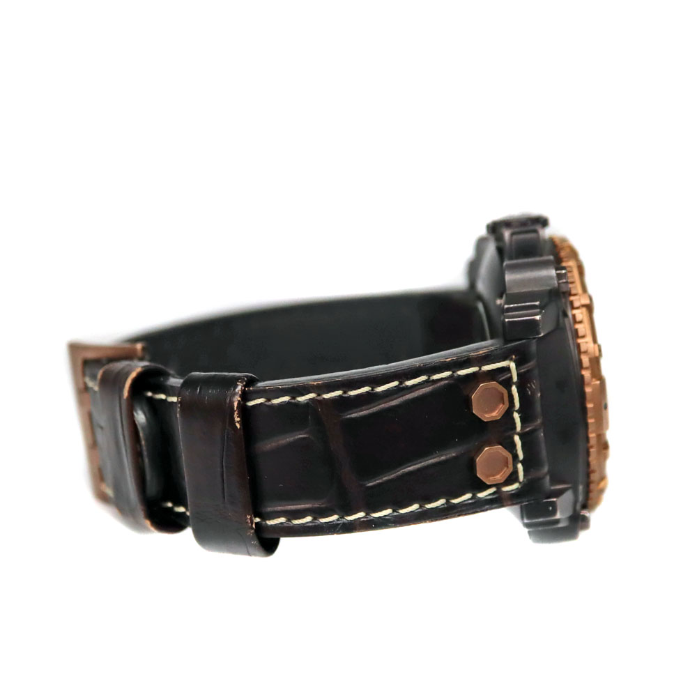 | 仕様 | 自動巻き 防水:20気圧防水 デイデイト機能 クロノグラフ機能 裏スケ 逆回転防止ベゼル キャリバー:バルジュー7750 パワーリザーブ:50時間 精度:+2~3秒/日(平置き) |