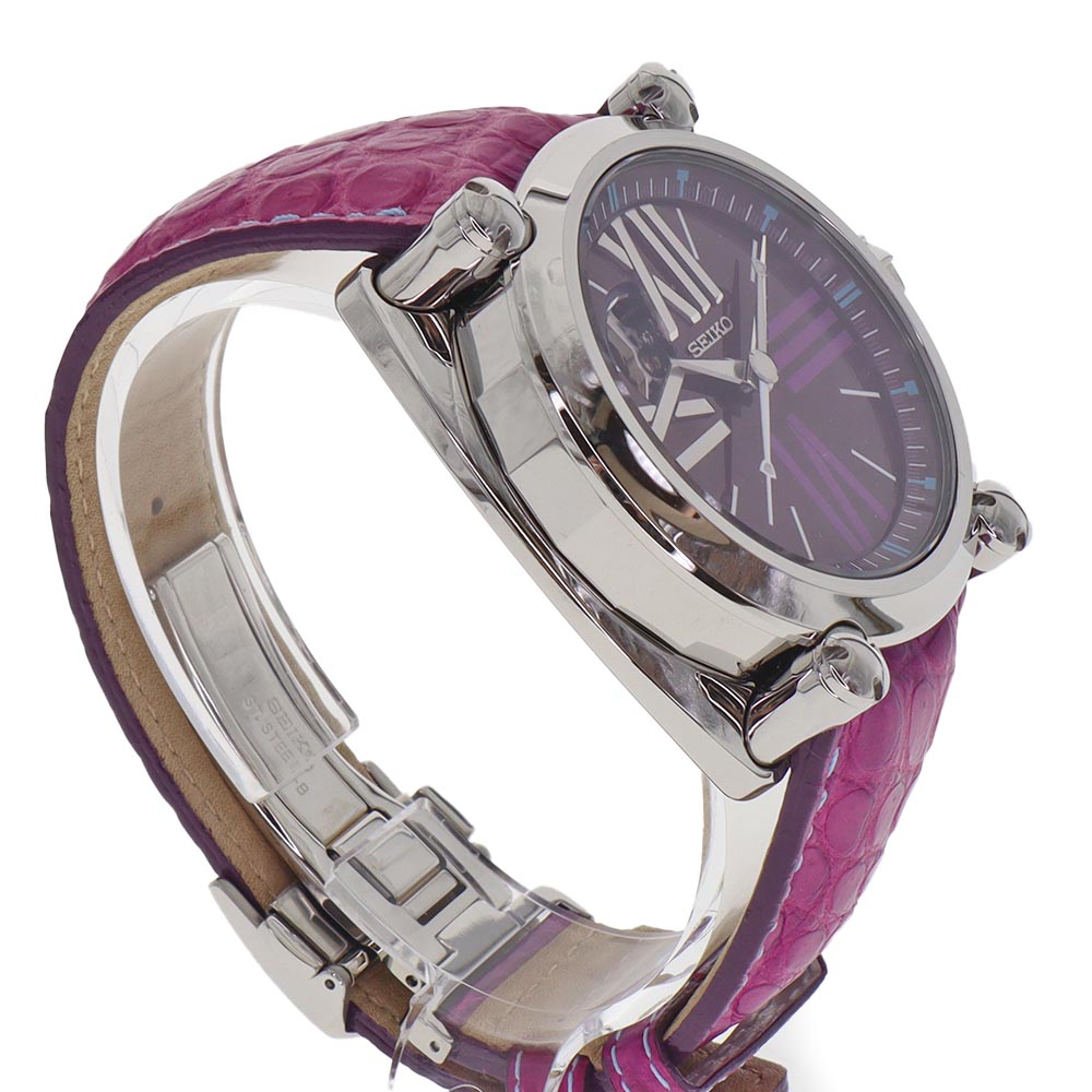 | 素材 | ケース:SS(ステンレス) ブレス:レザー ダイヤル:パープル ガラス:サファイアクリスタル |