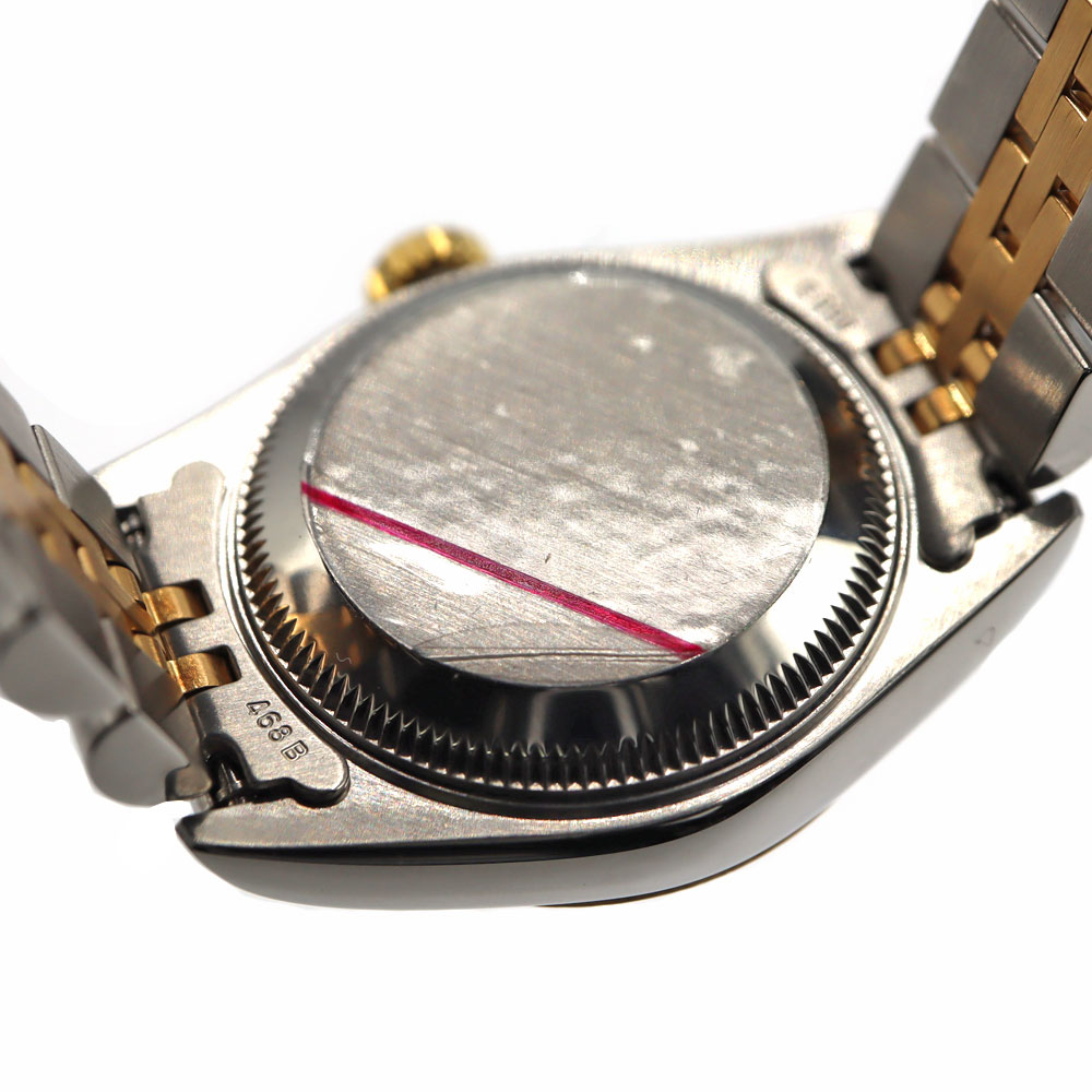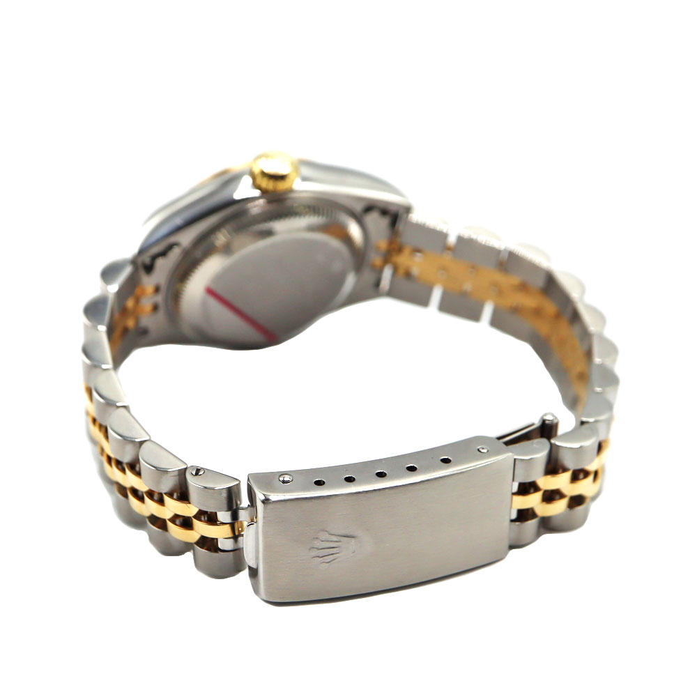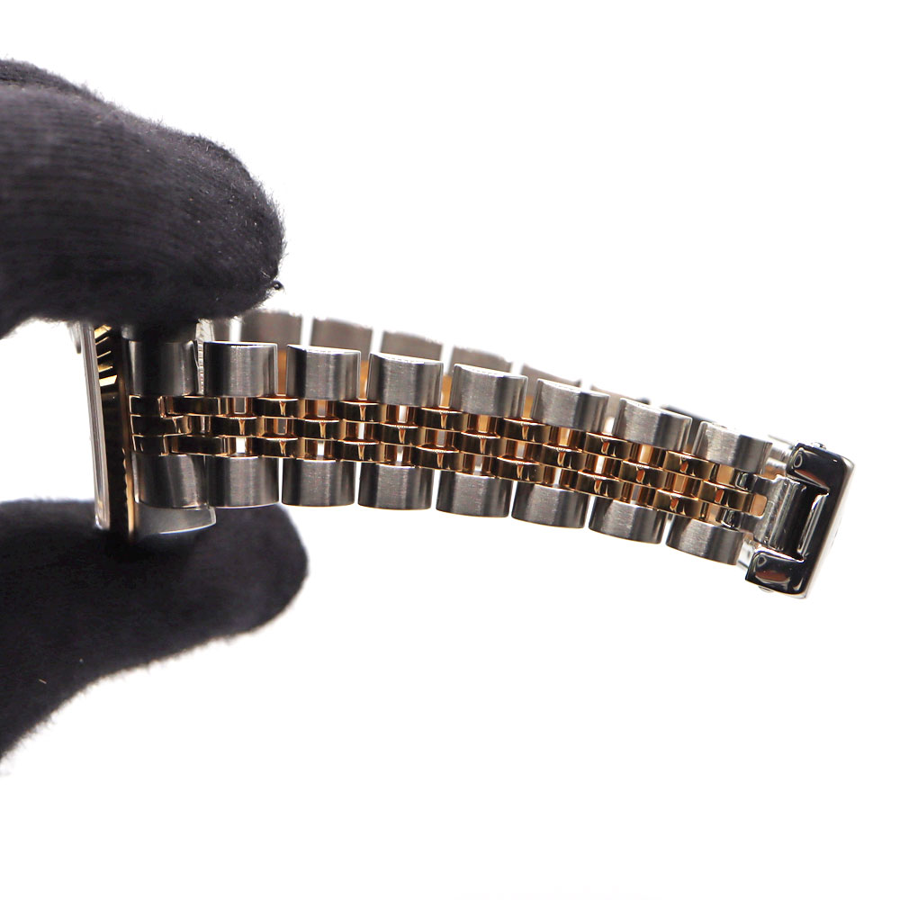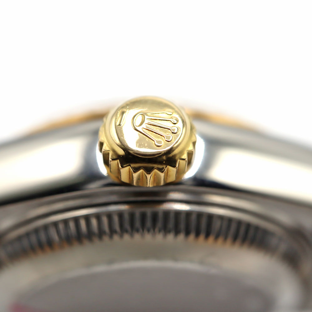 デイトジャストとは午前0時頃瞬時に日付が変わるデイトジャスト機構、全回転式ローターを搭載したパーペチュアル機構、ロレックス三大機構を搭載したモデルです。 シャンパンゴールドの文字盤に10Pダイヤのインデックスが高級感を醸し出しています。