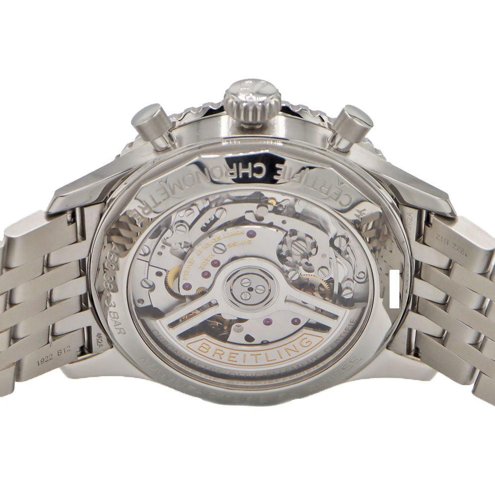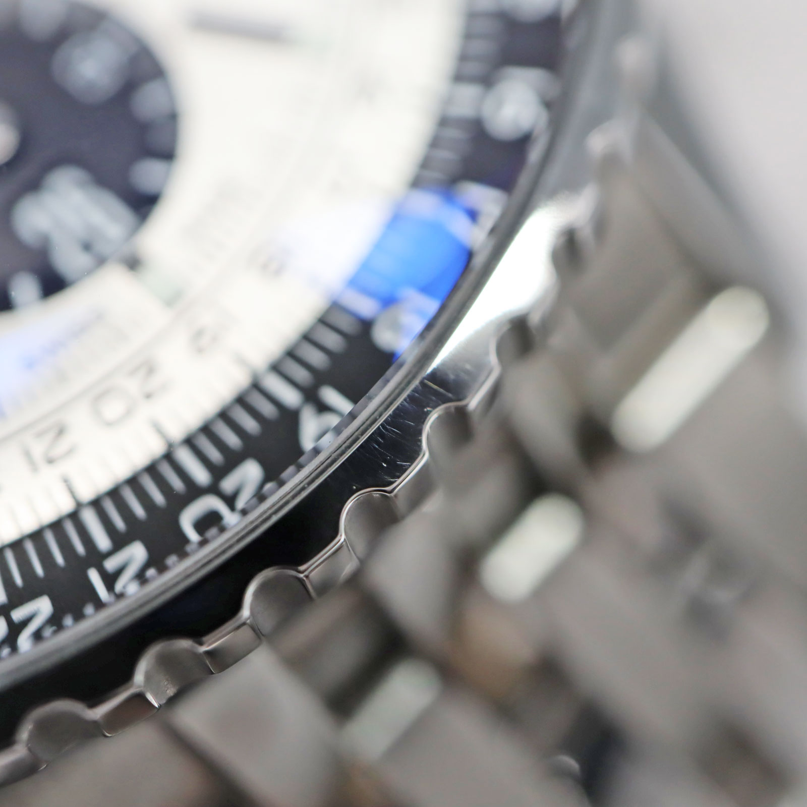 | 仕様 | 駆動方法:自動巻き キャリバー:ブライトリング01 パワーリザーブ:70時間 精度:日差+0~-1秒 防水:3気圧防水 機能:両方向回転ベゼル 機能:クロノグラフ/デイト表示 |