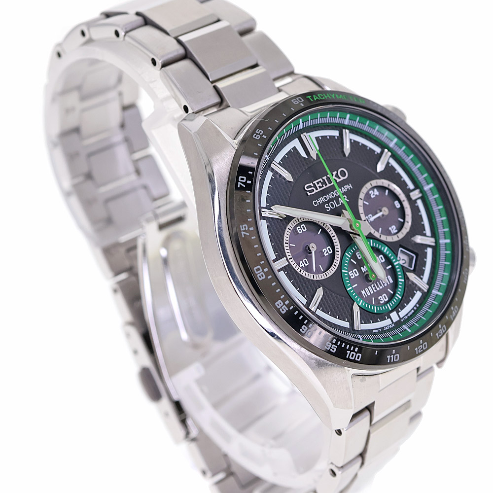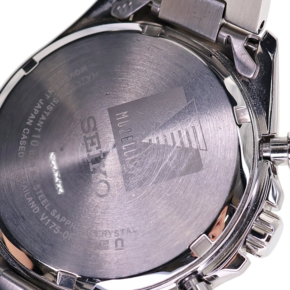 | 仕様 | ソーラー時計 キャリバー:V175 パワーリザーブ:- 精度/日:平均月差±15 秒(HP引用) 日付表示 ソーラー充電機能 ストップウオッチ機能(1/5秒計測 60分計) 24時針付き |