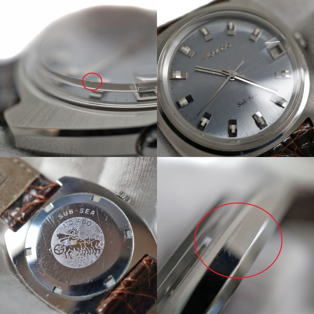 | 商品状態 | ■ノーメンテナンス品のため全体的に細かい擦り傷が見受けられます。 ■風防に小傷、小さい欠けがございます。 ■尾錠の側面部分にサビが複数ヶ所見受けられます。 ■ベルトの内側に擦り傷があり、白くなっている部分があります。 |