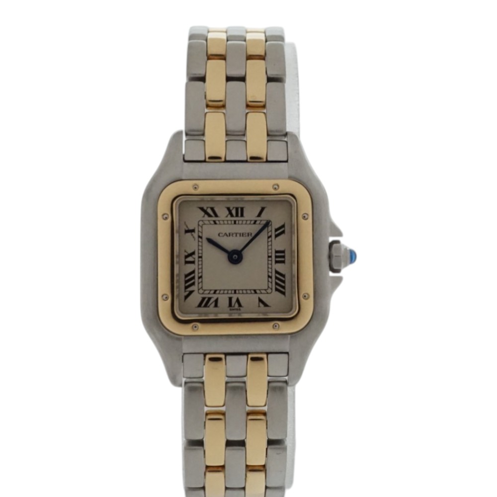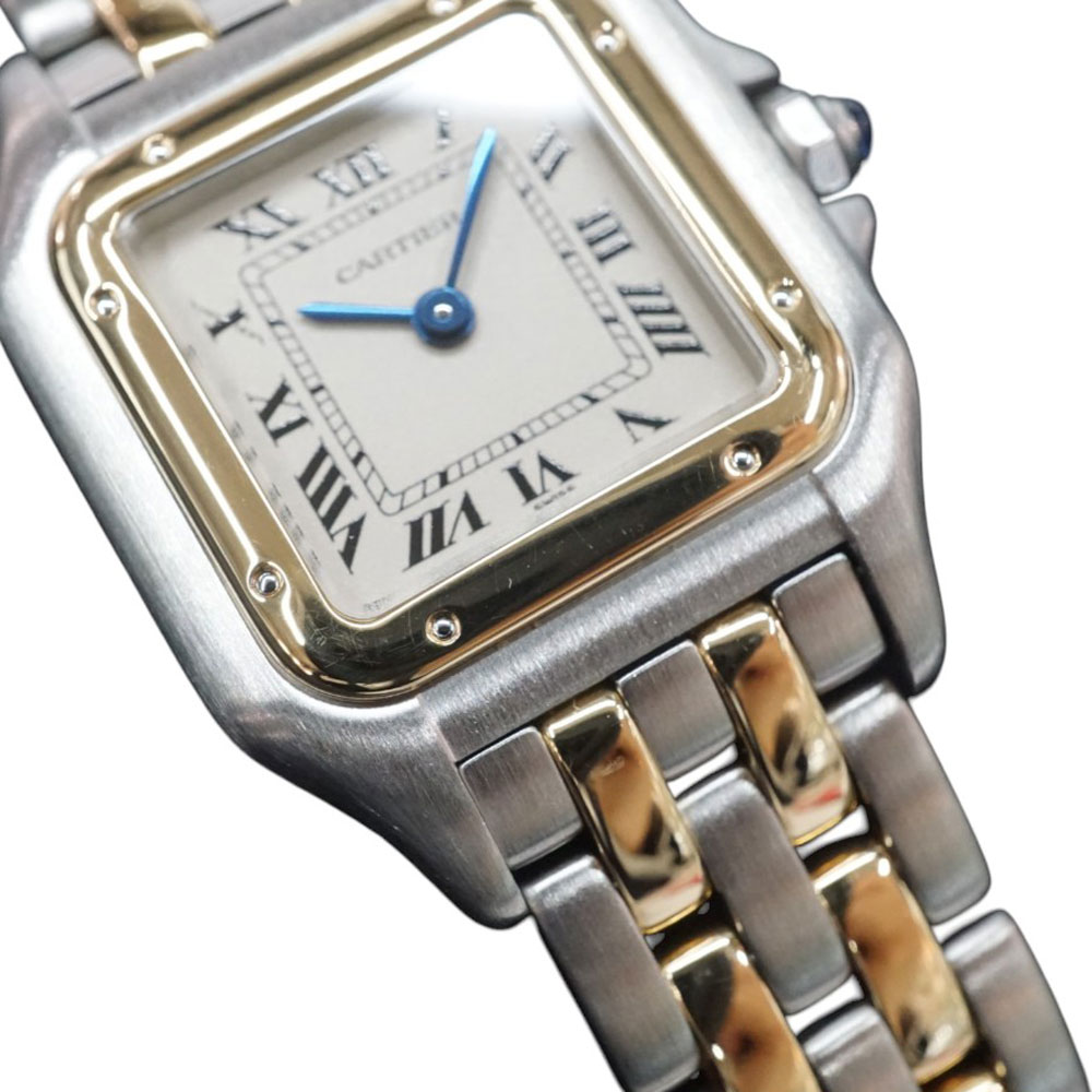 カルティエのアイコンである、豹(パンテール)の名前を冠するクオーツウォッチです。 1983年に登場してから、タンクフランセーズと並んで世界中で愛されているモデルの一つです。 ステンレスとK18YGのコンビカラーが映える華やかなモデルです。 お探しの方はこの機会に是非どうぞ。