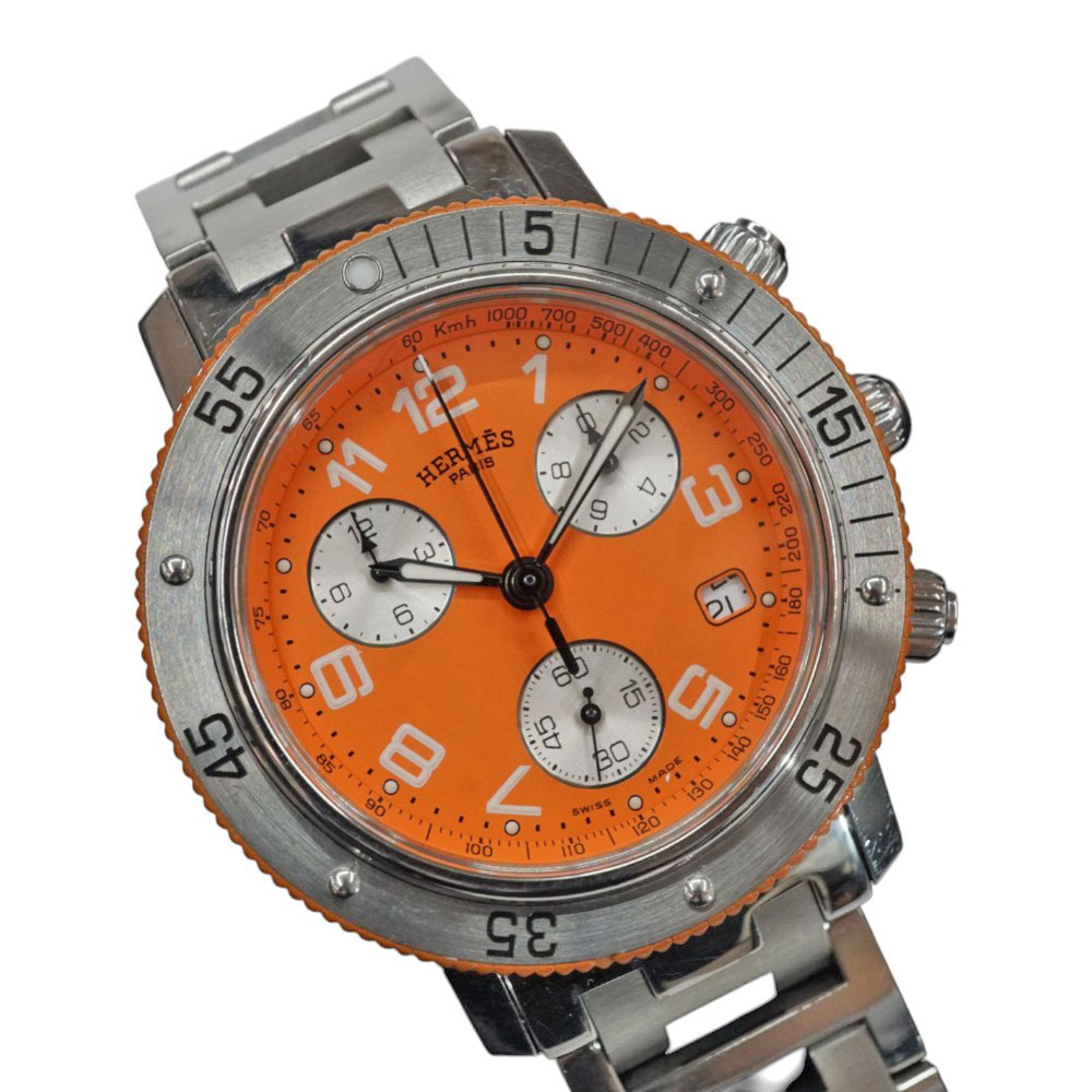 エルメスの中でも定番の人気シリーズです。 こちらはクロノグラフのモデルでビジネスにもカジュアルにも活躍してくれます。