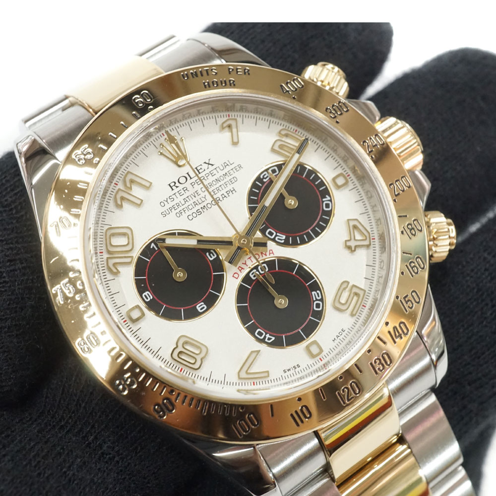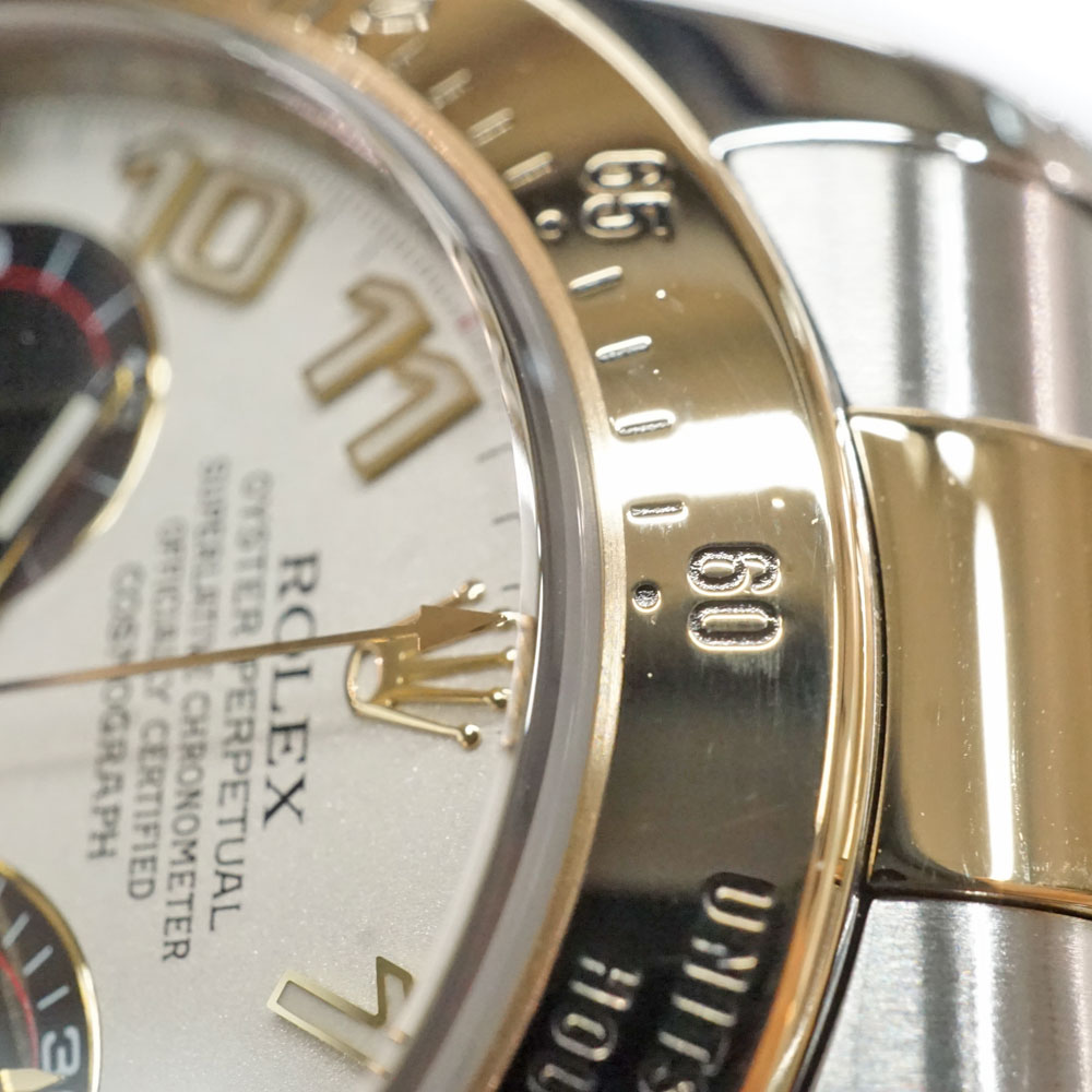 こちらのデイトナは、ステンレスとイエローゴールドを使用したゴージャスな印象のモデルとなっています。