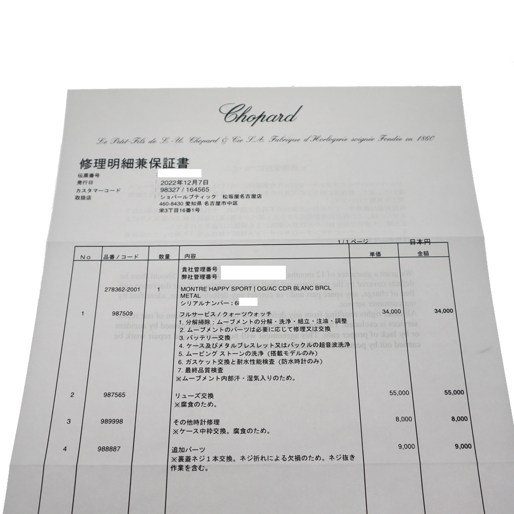 | 付属品 | ケース(メーカー)/オーバーホール証明書(メーカー) |
