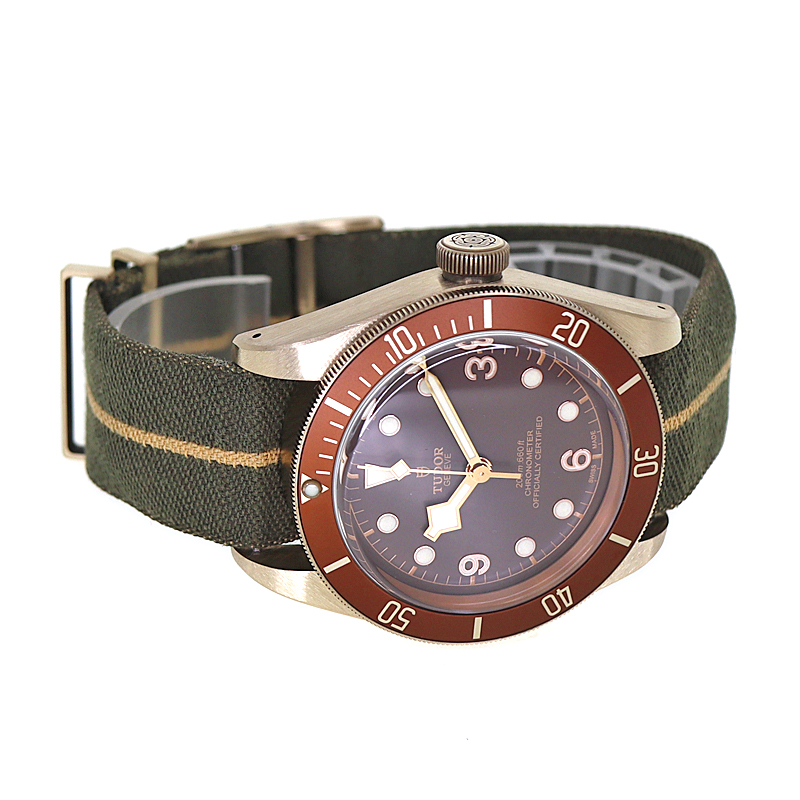 | 素材 | ケース:ブロンズ ストラップ:ファブリックブレス ダイヤル:ブラウン 風防(ガラス):サファイアクリスタル |