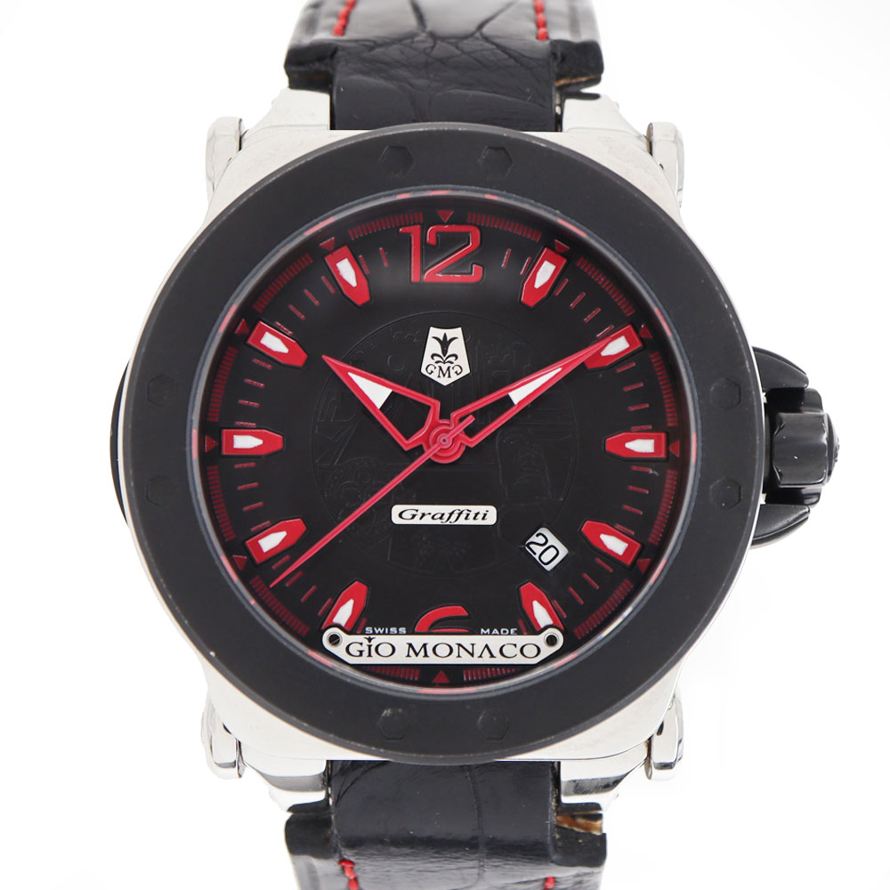 ジオ・モナコ Gio monako 763A1 グラフィティ メンズ 自動巻き 腕時計 ブラック 【中古】