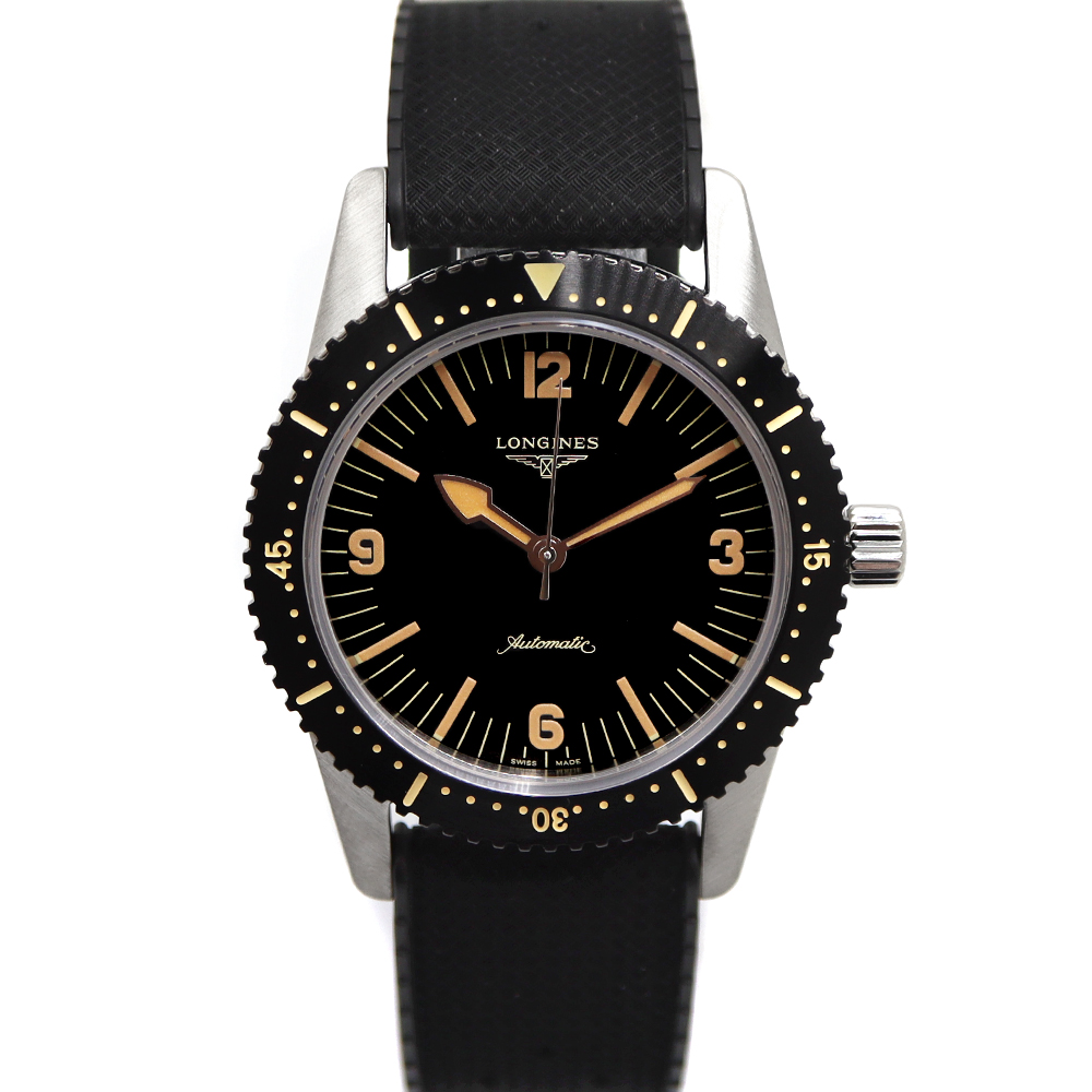 ロンジン Longines L2.822.4.56.2 ヘリテージスキンダイバー メンズ 自動巻き 腕時計 ブラック【中古】
