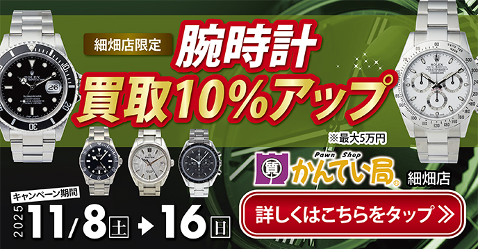 【かんてい局細畑店限定】2025年11月8日から11月16日でブランド時計買取10%アップキャンペーン開催!【細畑】