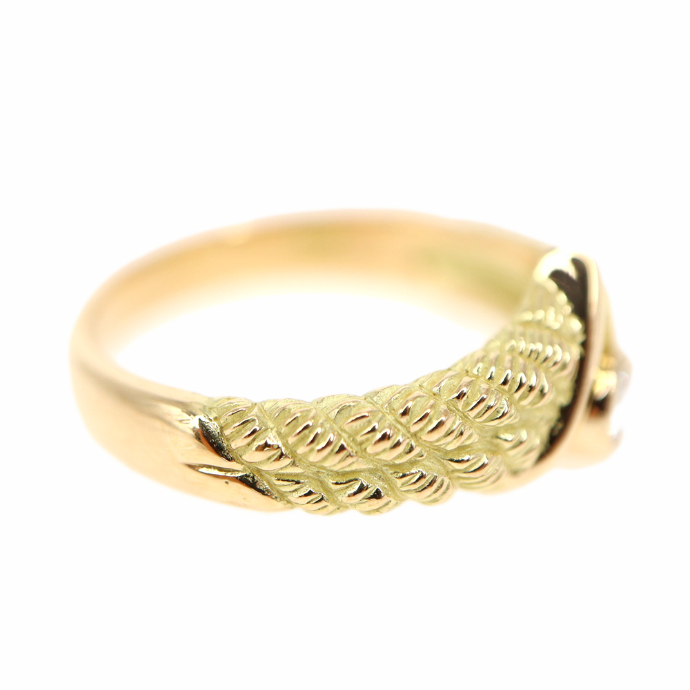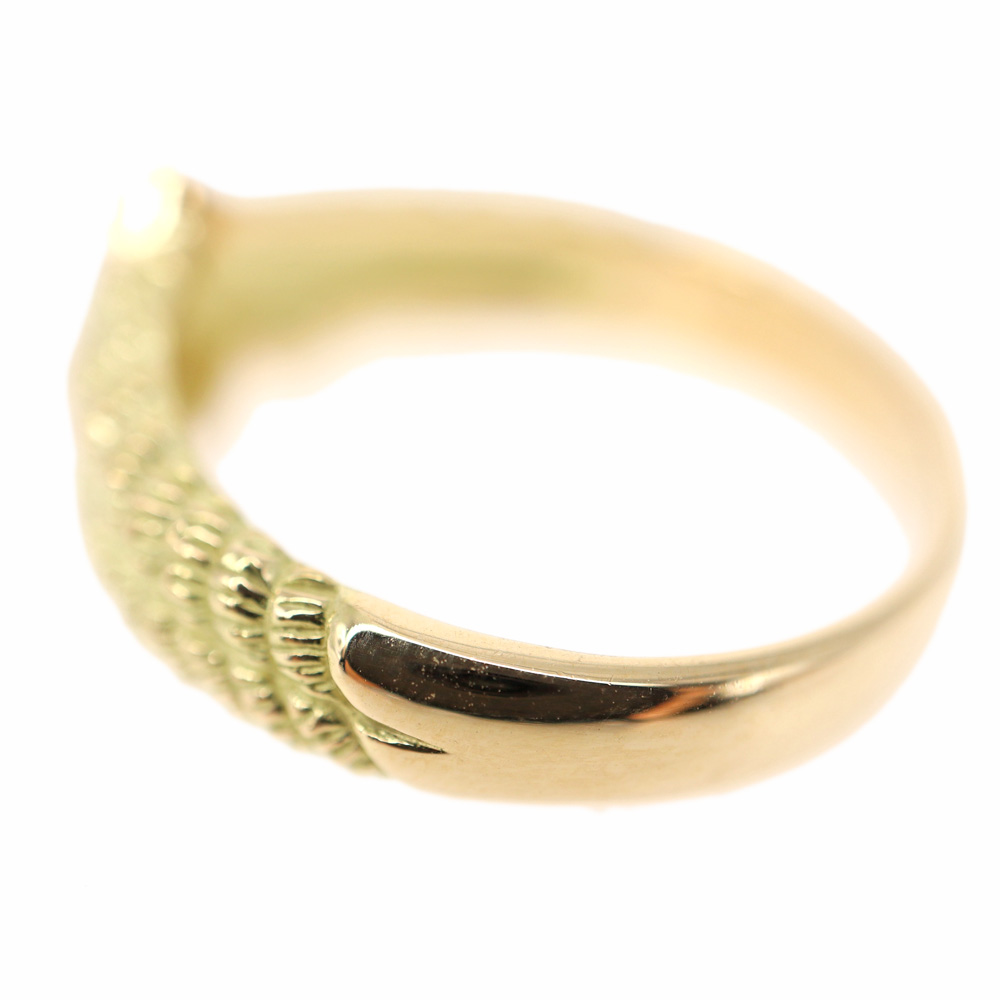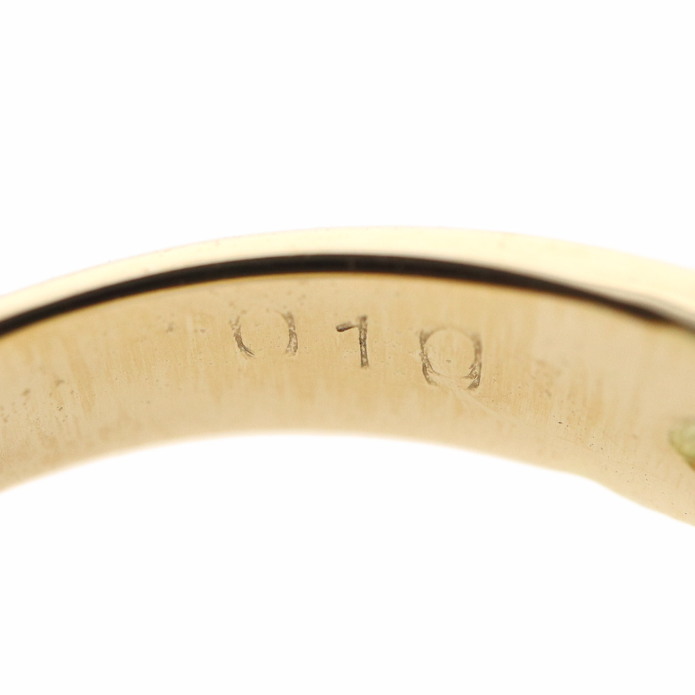 わずかに色味の異なるイエローゴールドが使用されたリングです。 中央にダイヤモンドがセッティングされており、煌びやかなお品となっております。