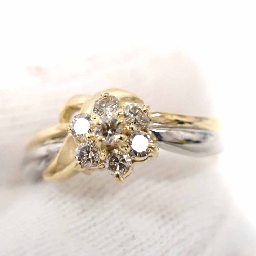 商品説明 | K18/Pt850ダイヤモンドリングのご紹介です。 フラワーのようにあしらわれたダイヤモンドが 可愛らしいリングです。 ゴールド、プラチナ、ダイヤモンドの輝きが美しく 一点で手元が華やかになります。 抜群の存在感を放ちパーティーシーンにもおすすめです。 この機会にぜひいかがでしょうか。 ※尚、当サイトの販売金額より店頭での販売金額の方をお安く設定させて頂いております。予め、ご了承下さいませ。 |