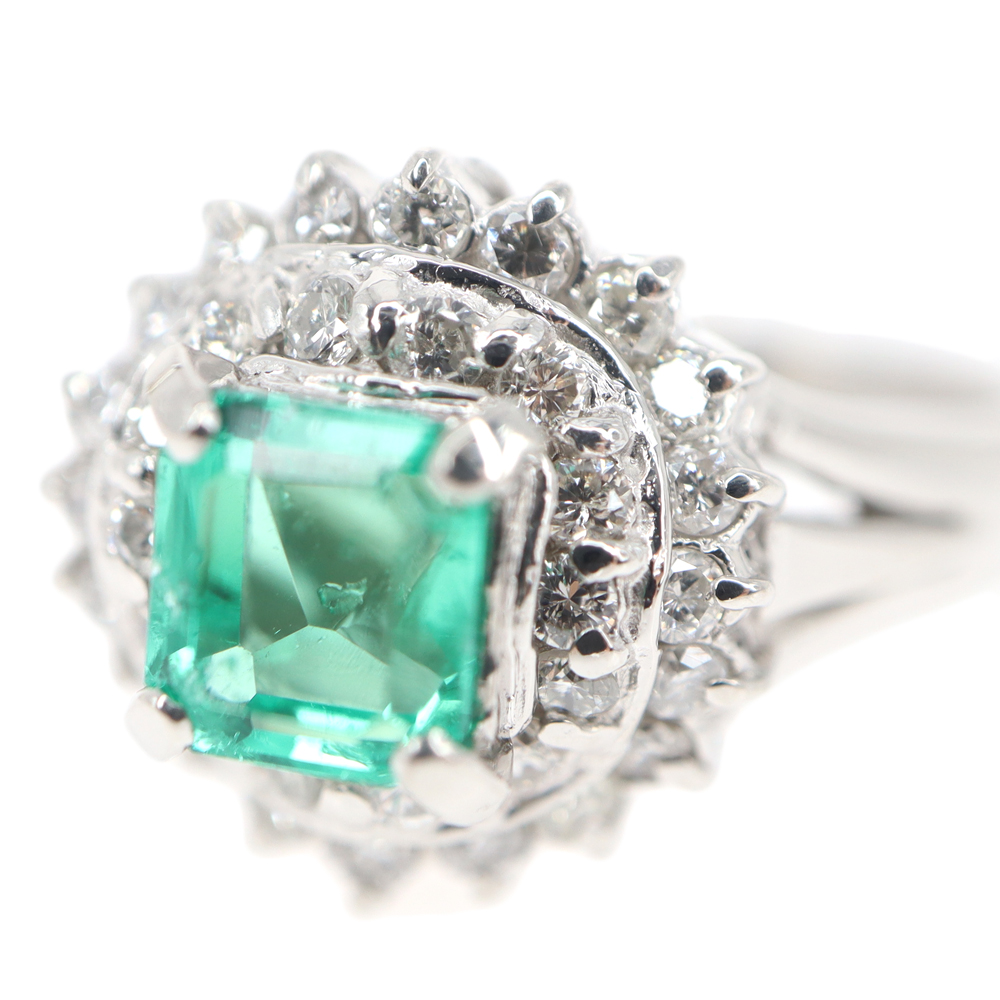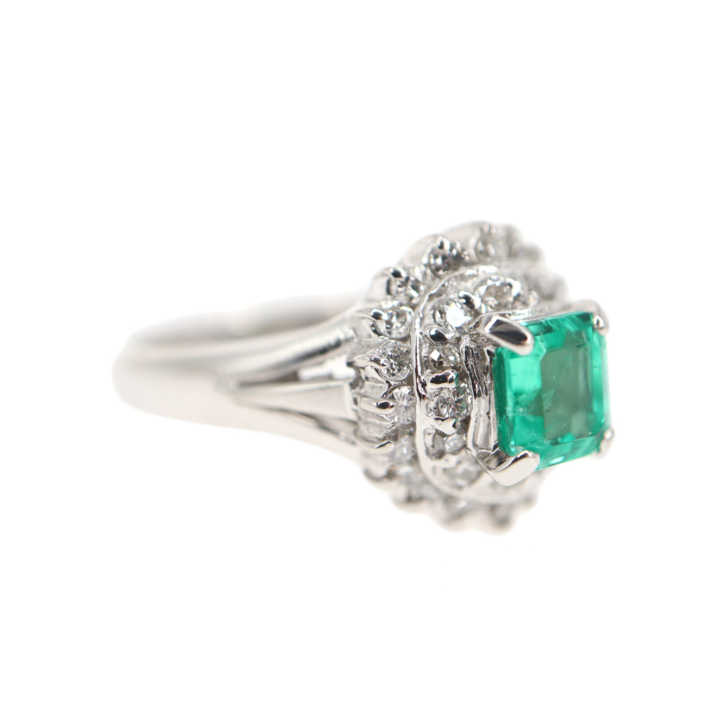 商品説明 | Pt850製のエメラルドリングが入荷致しました。 わずかに淡い色味のエメラルドが中央にセッティングされたリングです。 エメラルドを囲うようにセッティングされたダイヤモンドが手元を華やかに演出します。 ※尚、当サイトの販売金額より店頭での販売金額の方をお安く設定させて頂いております。予めご了承ください。 |