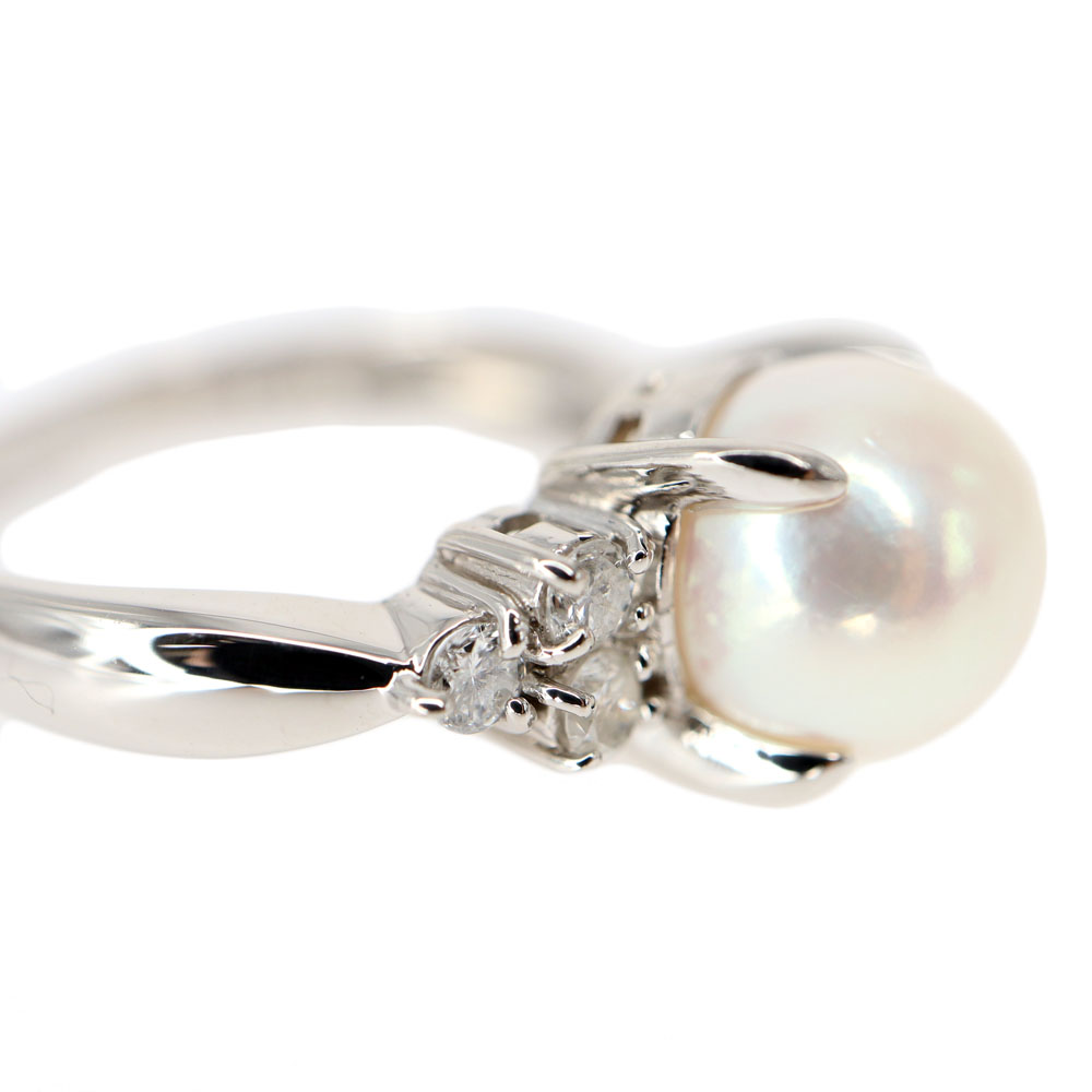 | 商品説明 | Pt900【プラチナ900】パールダイヤモンドリングのご紹介です。 9.00mmのアコヤ養殖真珠が目を惹くリングです。 ピンクの色味がまざった光沢が上品ながら煌びやかな印象のお品となっております。 お探しの方はこの機会にぜひいかがでしょうか。