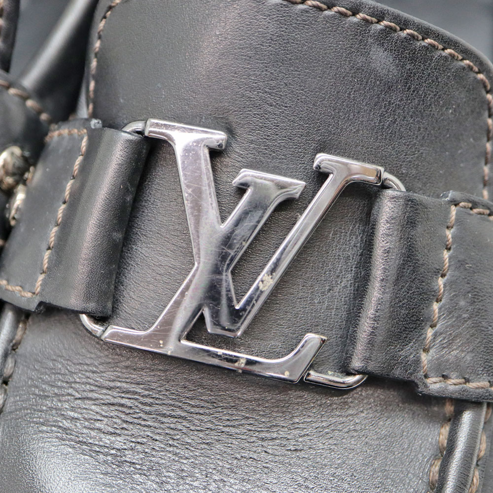 正面のLVロゴがワンポイントとなった、おしゃれなブラックカラーのローファーです。