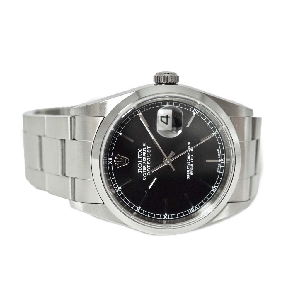 デイトジャストとは午前0時頃瞬時に日付が変わるデイトジャスト機構、全回転式ローターを搭載したパーペチュアル機構、ロレックス三大機構を搭載したモデルです。