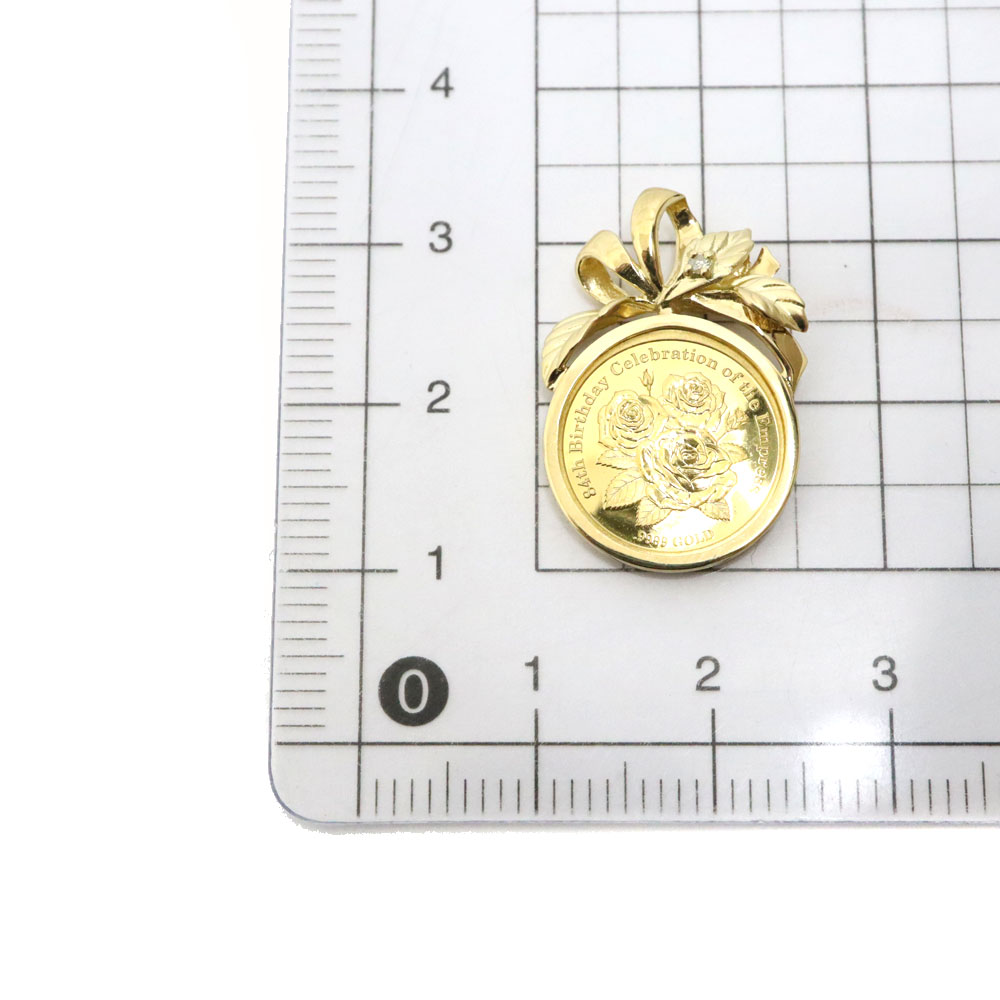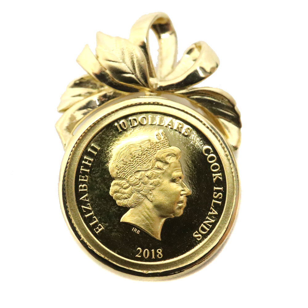 1/25ozコインのペンダントトップです。 18金枠飾りには葉やリボンのようなデザインが施されています。 この機会に是非いかがでしょうか。
