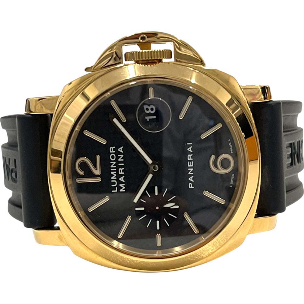 | 商品説明 | パネライ PAM00140 ルミノール マリーナは、イエローゴールドのケースが放つ気品と、カーボンダイヤルの力強さが魅力の自動巻きモデルです。視認性に優れたデザインと、スモールセコンドを備えたクラシックなレイアウトが特徴で、パネライらしい個性を演出します。レザーストラップに付け替えれば手元に重厚な印象を与え、日常から特別なシーンまで幅広く活躍する一本です。