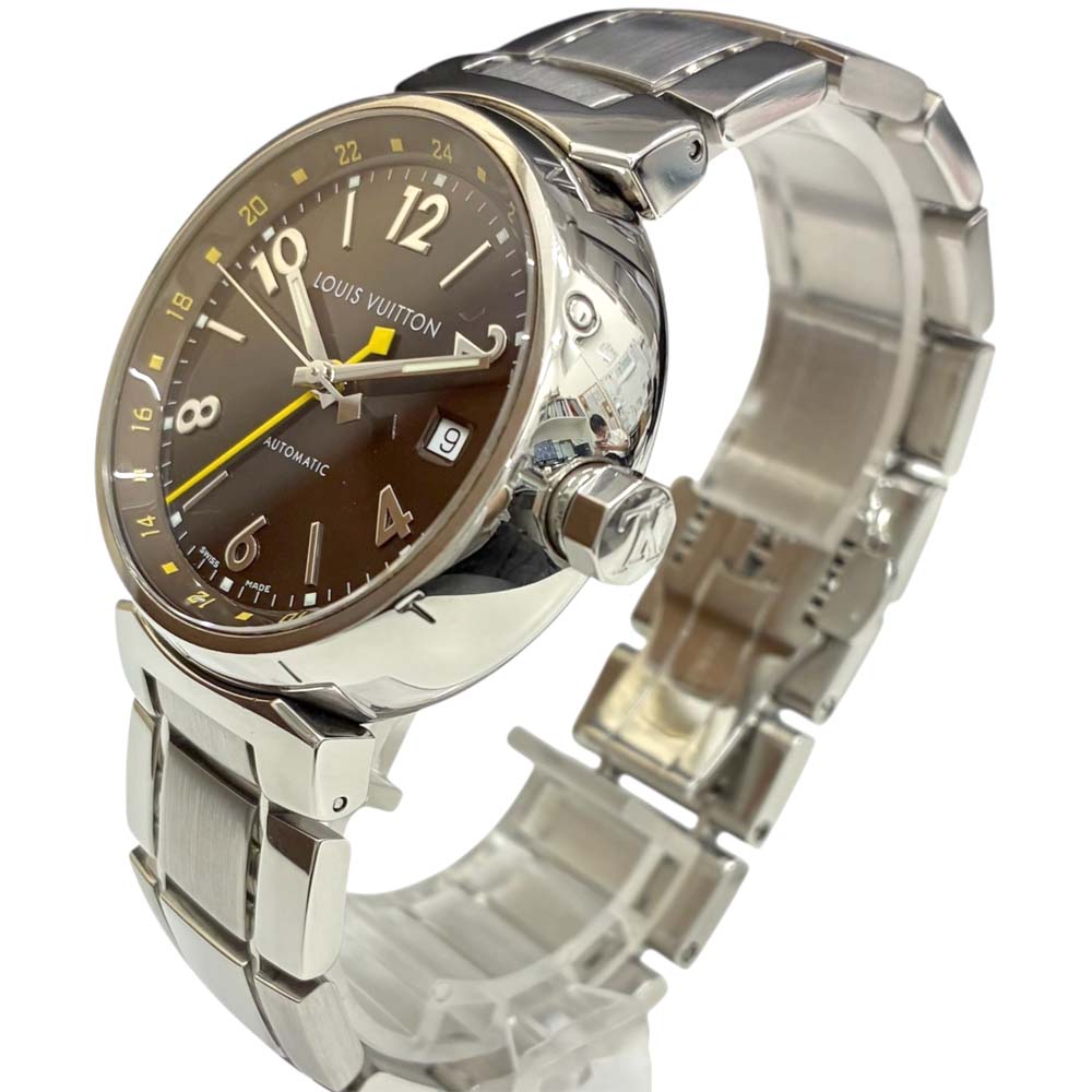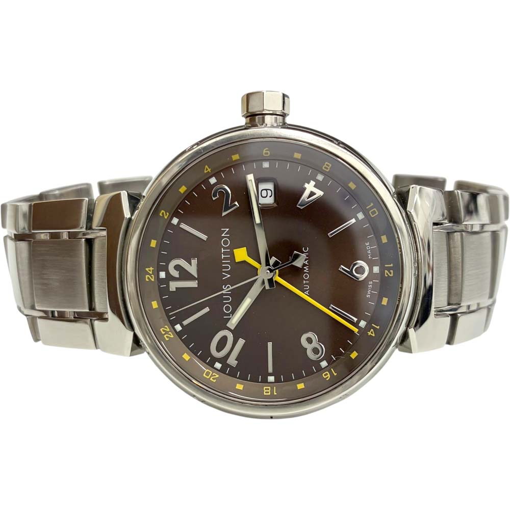 | 商品説明 | Louis Vuitton タンブールGMT Q1131は、ステンレススチールケースにブラウンダイヤルを組み合わせたGMT機能付き自動巻時計で、ETA2893-1ムーブメントを搭載し、二つの時間帯をスムーズに切り替え可能な実用性とエレガンスを両立しています。