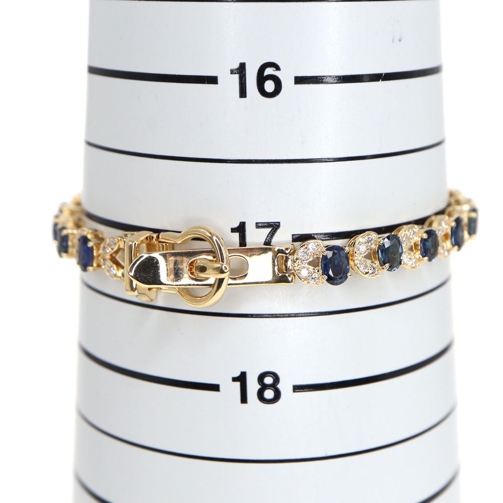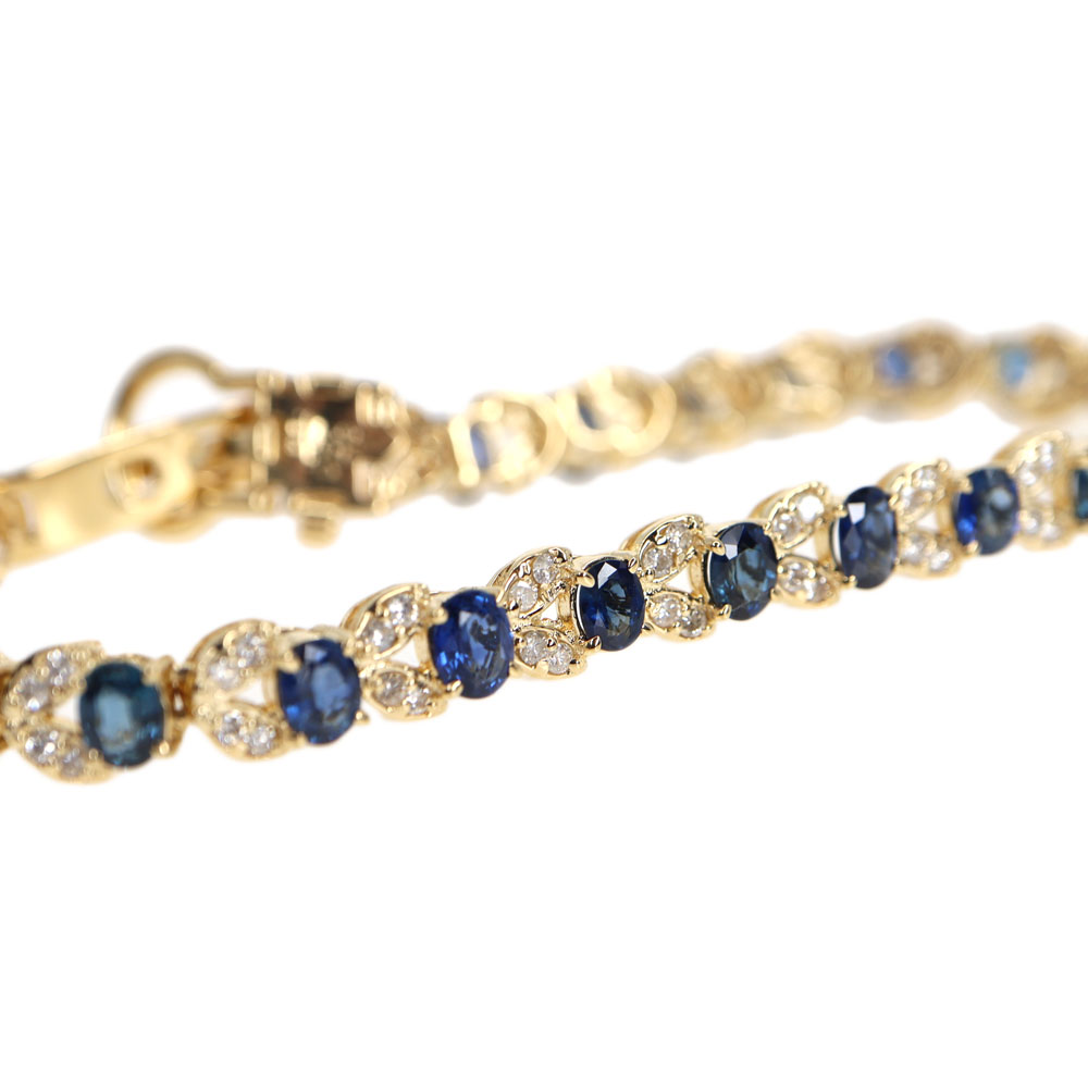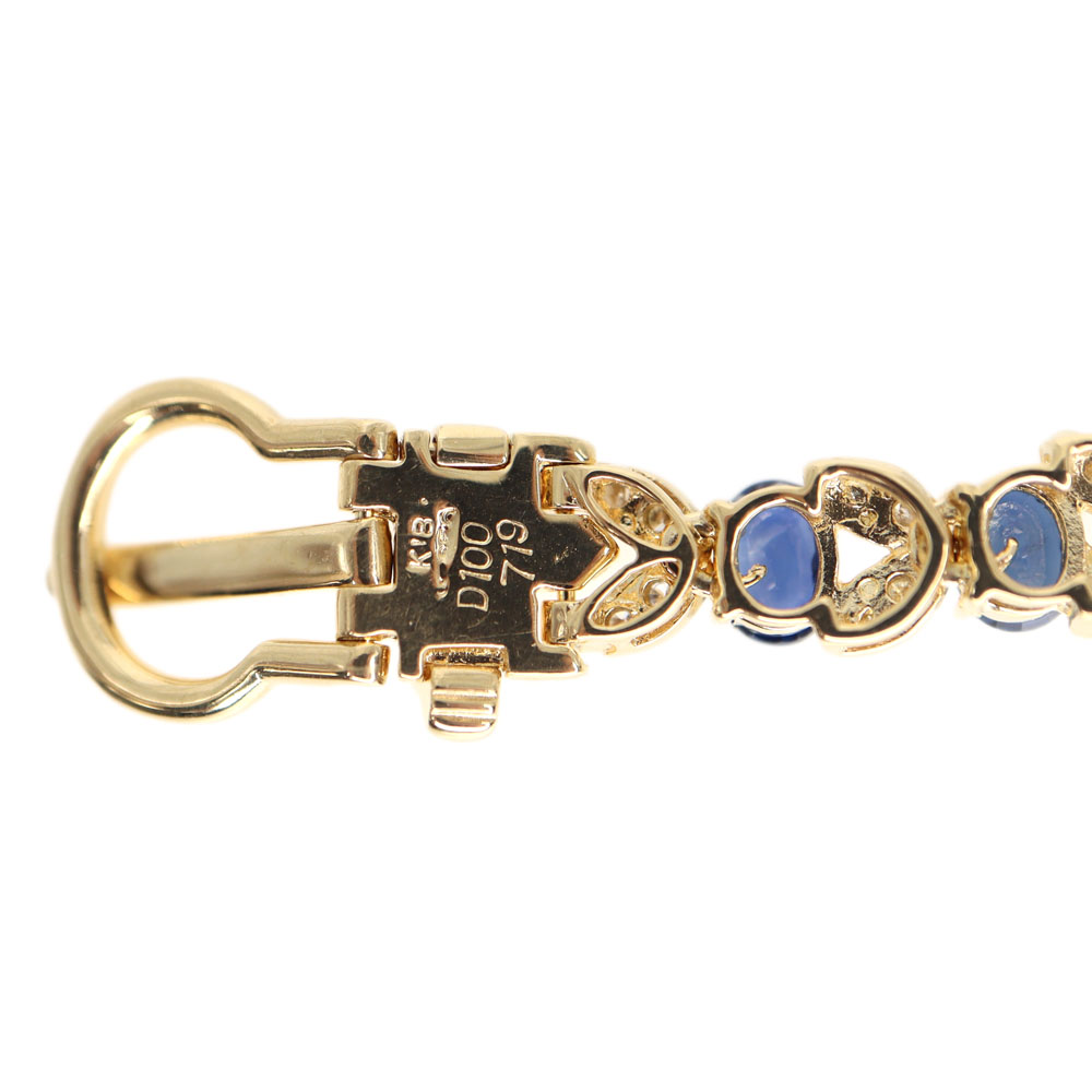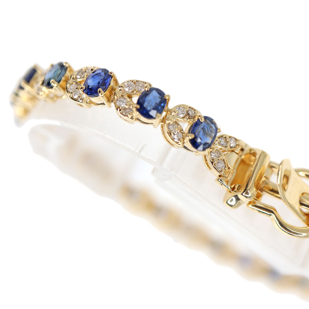 | 商品説明 | K18【18金】サファイア ダイヤモンドブレスレットのご紹介です。 ベルトのようなデザインにサファイアとダイヤモンドが交互にセッティングされたブレスレットです。 イエローゴールドが使用されており煌びやかな印象のアイテムとなっています。 お探しの方はこの機会に是非いかがでしょうか。