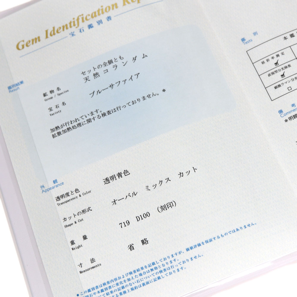 | 重さ | 総重量約:18.1g サファイア:7.19ct ダイヤモンド:1.00ct |