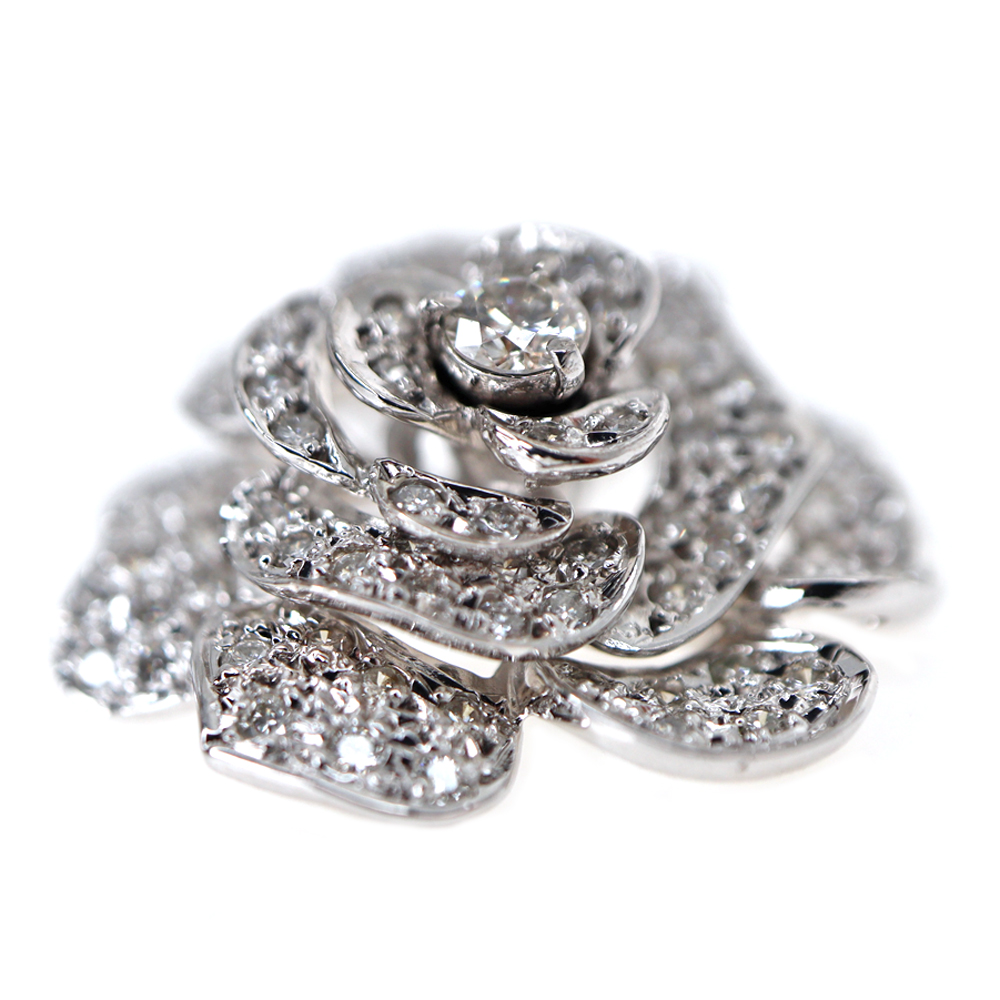 | 商品説明 | K18WG製のダイヤモンドトップのご紹介です。 バラ型のモチーフが可愛らしいペンダントトップです。