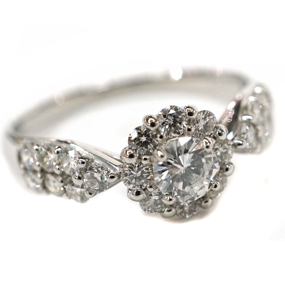 ダイヤモンドがきらびやかで華やかなデザインのリングです。 お手元のアクセントにぜひいかがでしょうか。
