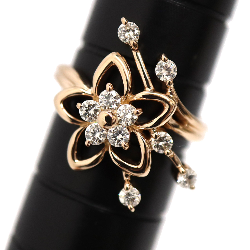 地金部分のお花デザインが繊細でダイヤモンドが0.50ctセッティングされた、 非常に綺麗なフラワーモチーフのリングです。 お手元を華やかにしてくれるお品物です。 この機会に是非いかがでしょうか。