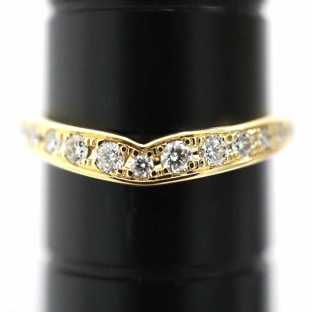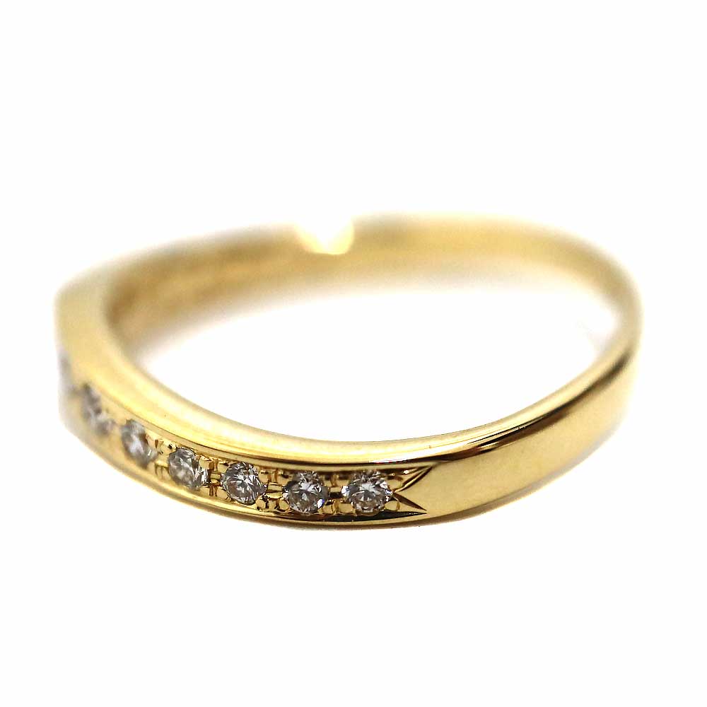 | 商品説明 | K18【18金】ダイヤ付きリングのご紹介です。 Vラインになっており、指元を細く魅せてくれます。 ラインに並べられたダイヤモンドも綺麗です。 この機会に是非いかがでしょうか。