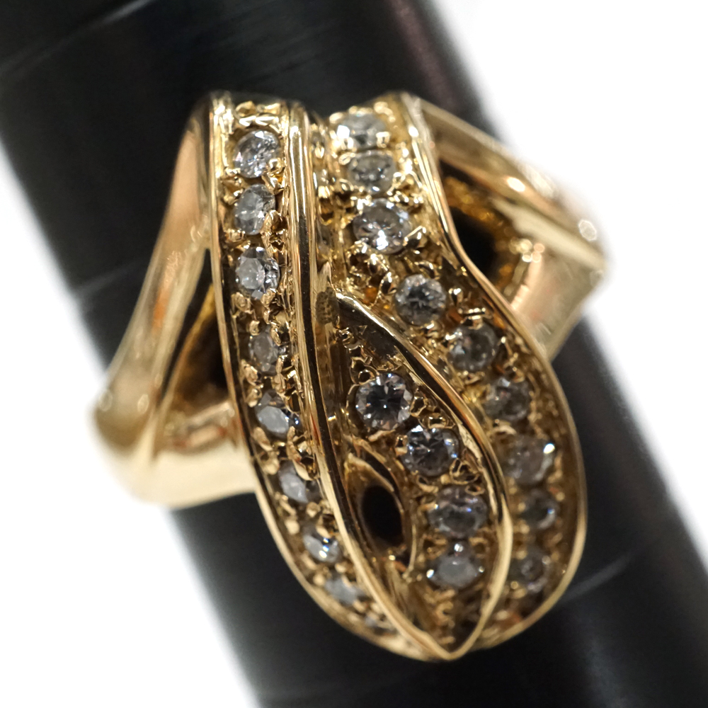 ダイヤモンドが施されたボリュームと存在感のある上品なデザインリングです。 お手元のアクセントにぜひいかがでしょうか。