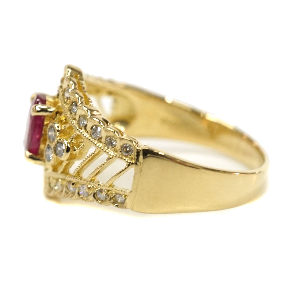ルビーとダイヤモンドが施されたボリュームと存在感のある上品なデザインリングです。 お手元のアクセントにぜひいかがでしょうか。