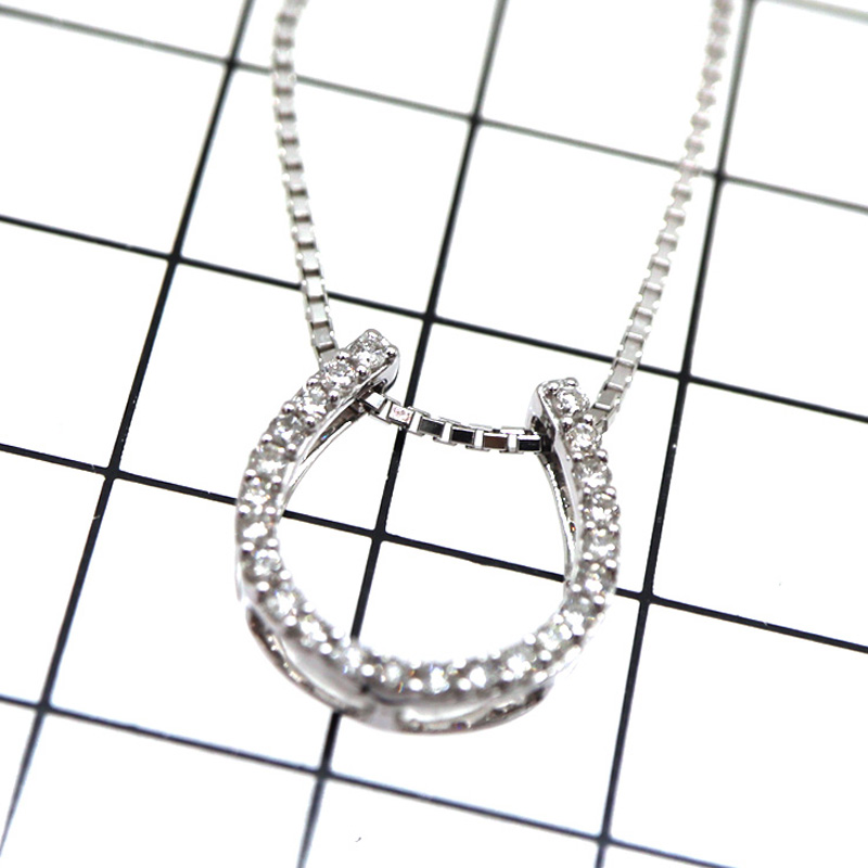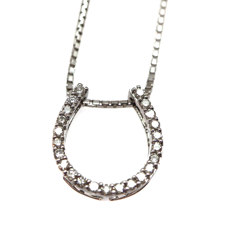 幸運の象徴である馬蹄モチーフに、ダイヤモンドをあしらったK18ホワイトゴールドネックレス。