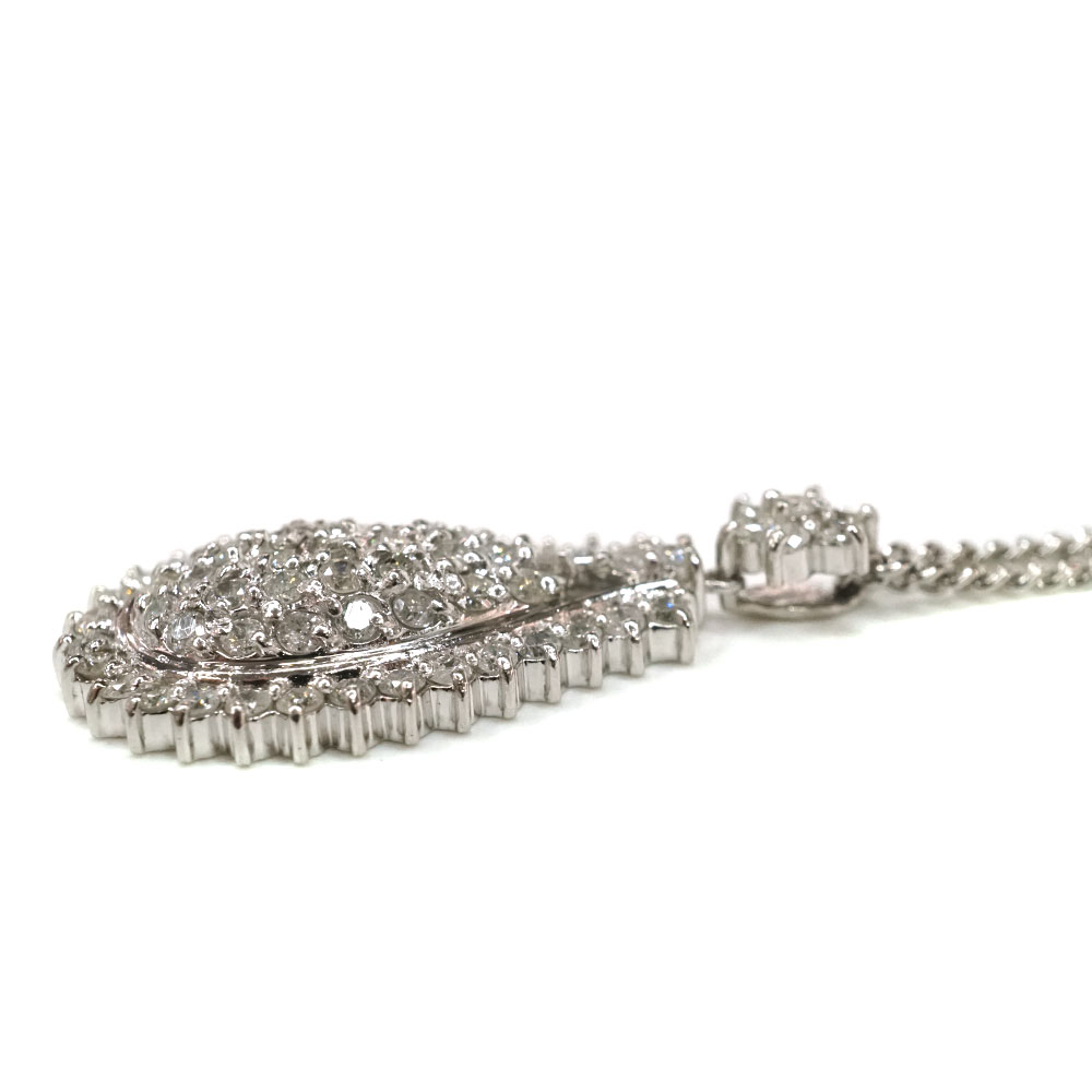 ダイヤモンドが綺麗に輝くデザインで程よい存在感あるネックレスです。 首元のアクセントにいかがでしょうか。