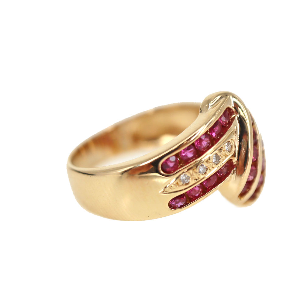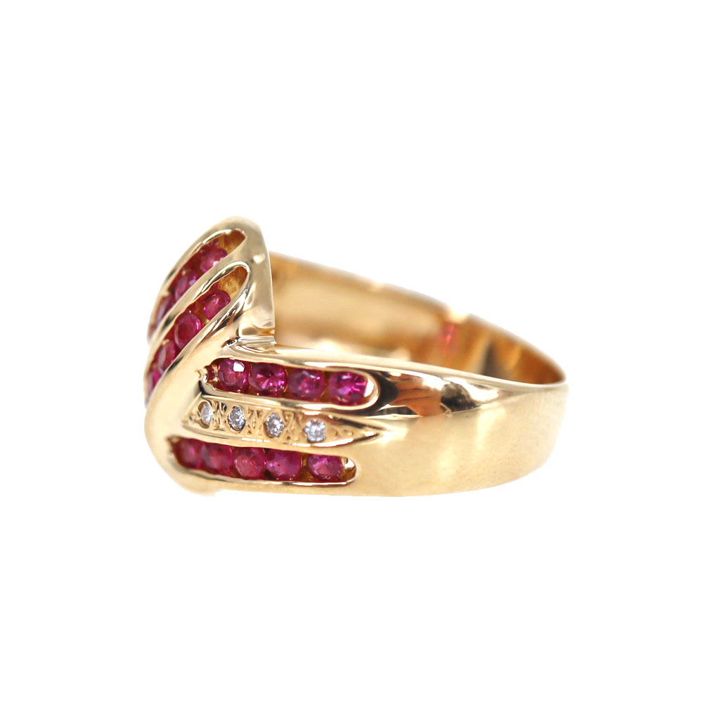 柔らかい曲線でデザインされたリングは、ルビーのサイドにダイヤモンドが施されていて可憐さと上品さを兼ね備えています。