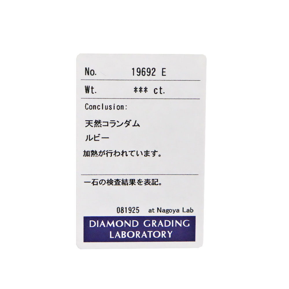 | 重さ | 総重量約:7.2g ルビー:ct数不明 ダイヤモンド:0.05ct |