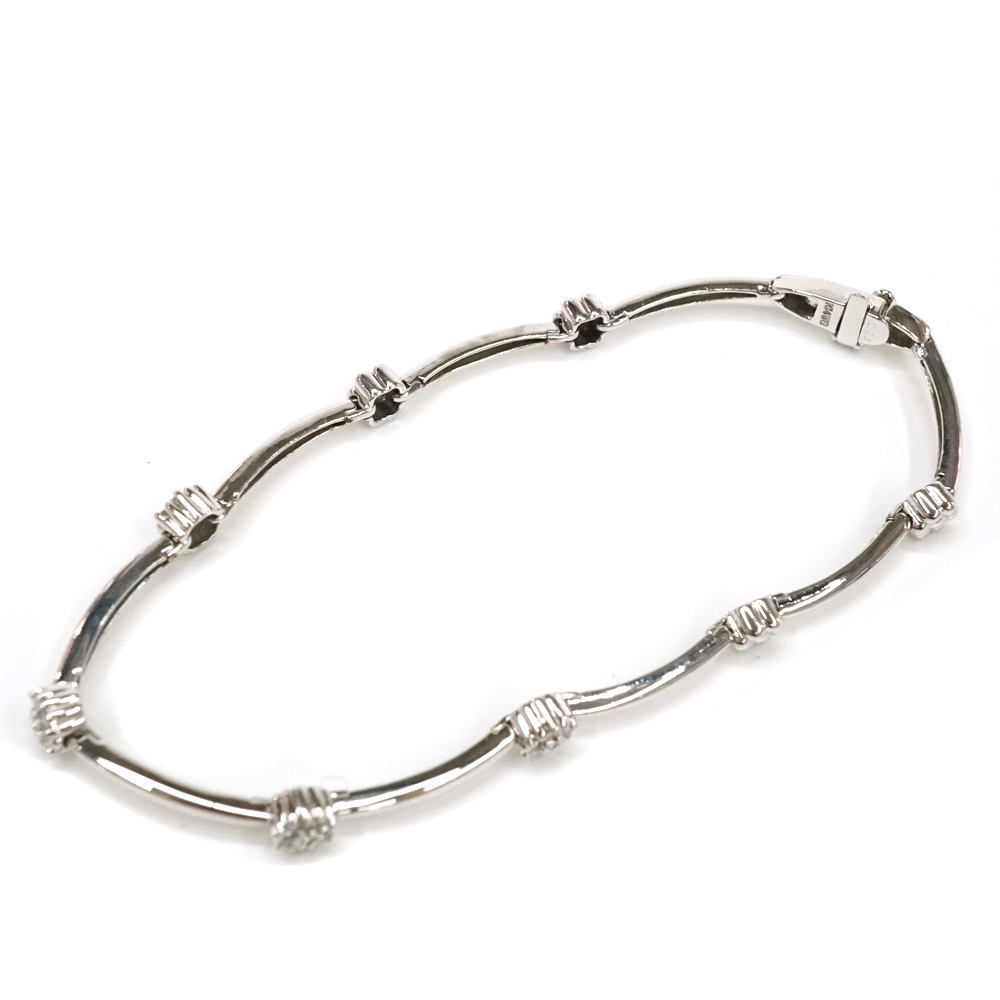 シンプルなデザインで上品なブレスレットです。 手元を華やかに演出してくれるお品物となっております。 この機会にぜひいかがでしょうか。 ※尚、当サイトの販売金額より店頭での販売金額の方をお安く設定させて頂いております。予めご了承ください。 |