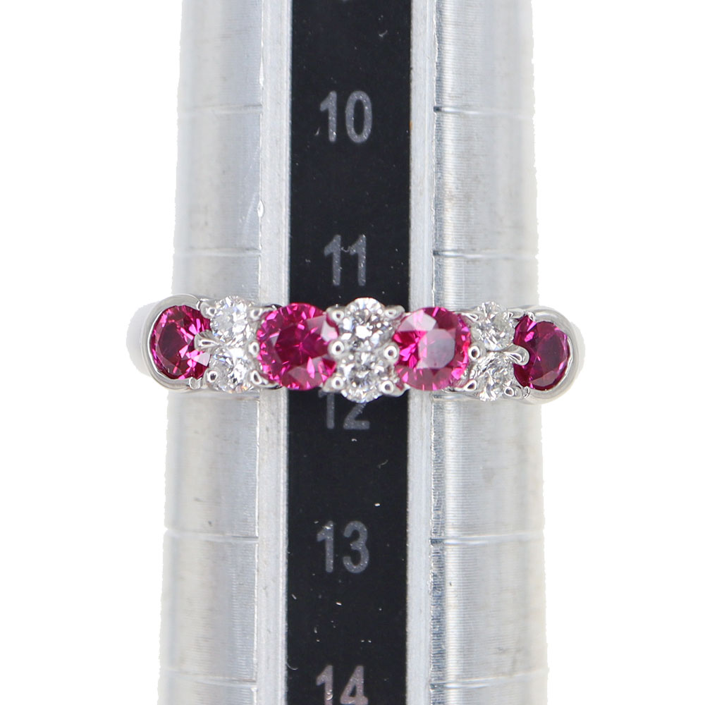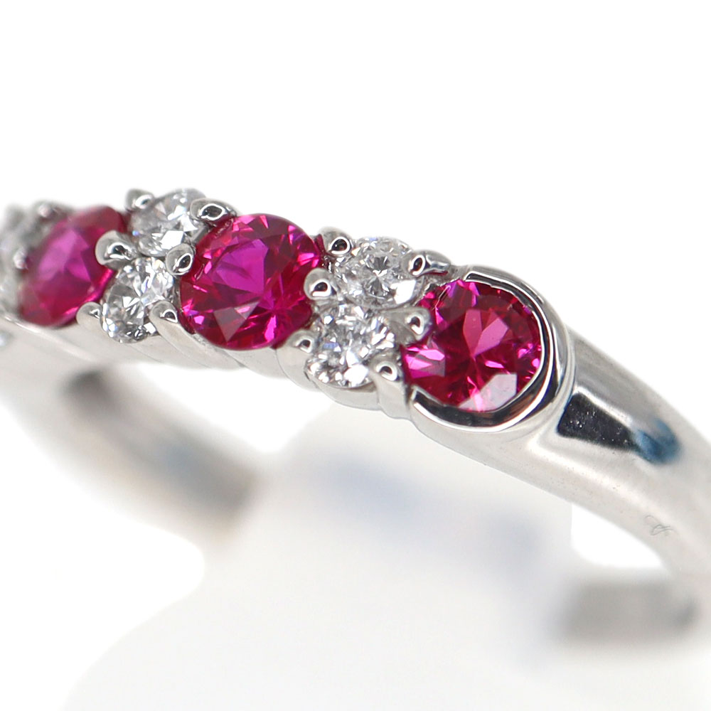 ルビーとダイヤモンドが交互にセッティングされたデザインで、一列に並んだ宝石がキラキラと輝きます。
